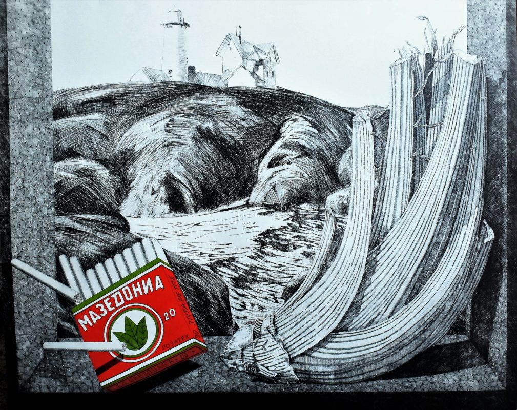 Fernando Bellver – «Bodegón con cardo, Hopper y tabaco» grabado aguafuerte iluminado a mano