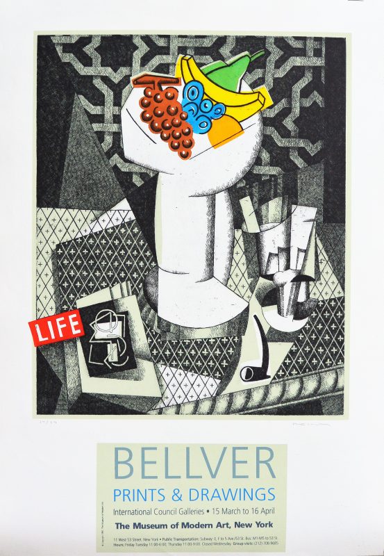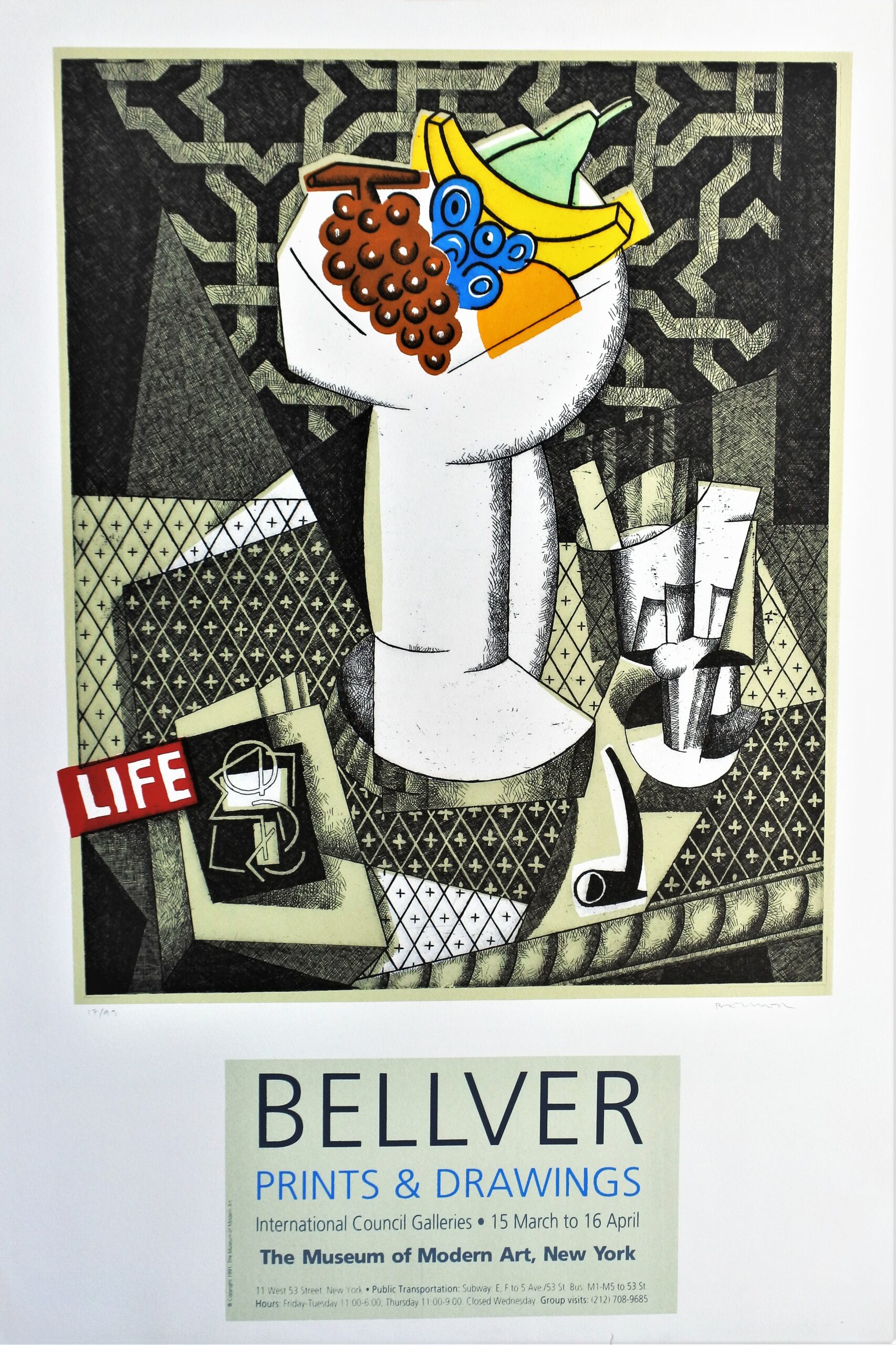 Fernando Bellver, Bodegón Museum of Modern Art New York, grabado aguafuerte iluminado a mano, edición 99 ejemplares, numerado y firmado a lápiz, 100×70 cms.