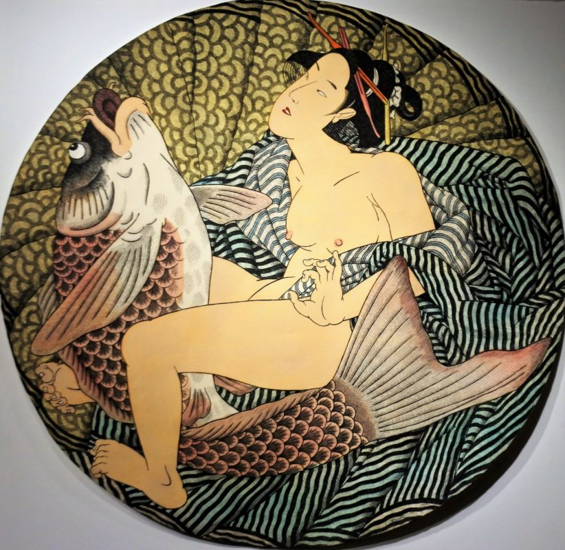 Fernando Bellver, Carpa, Serie I love Tokyo, grabado aguafuerte iluminado a mano, edición 90 ejemplares, numerado y firmado a lápiz, diámetro 96 cms.