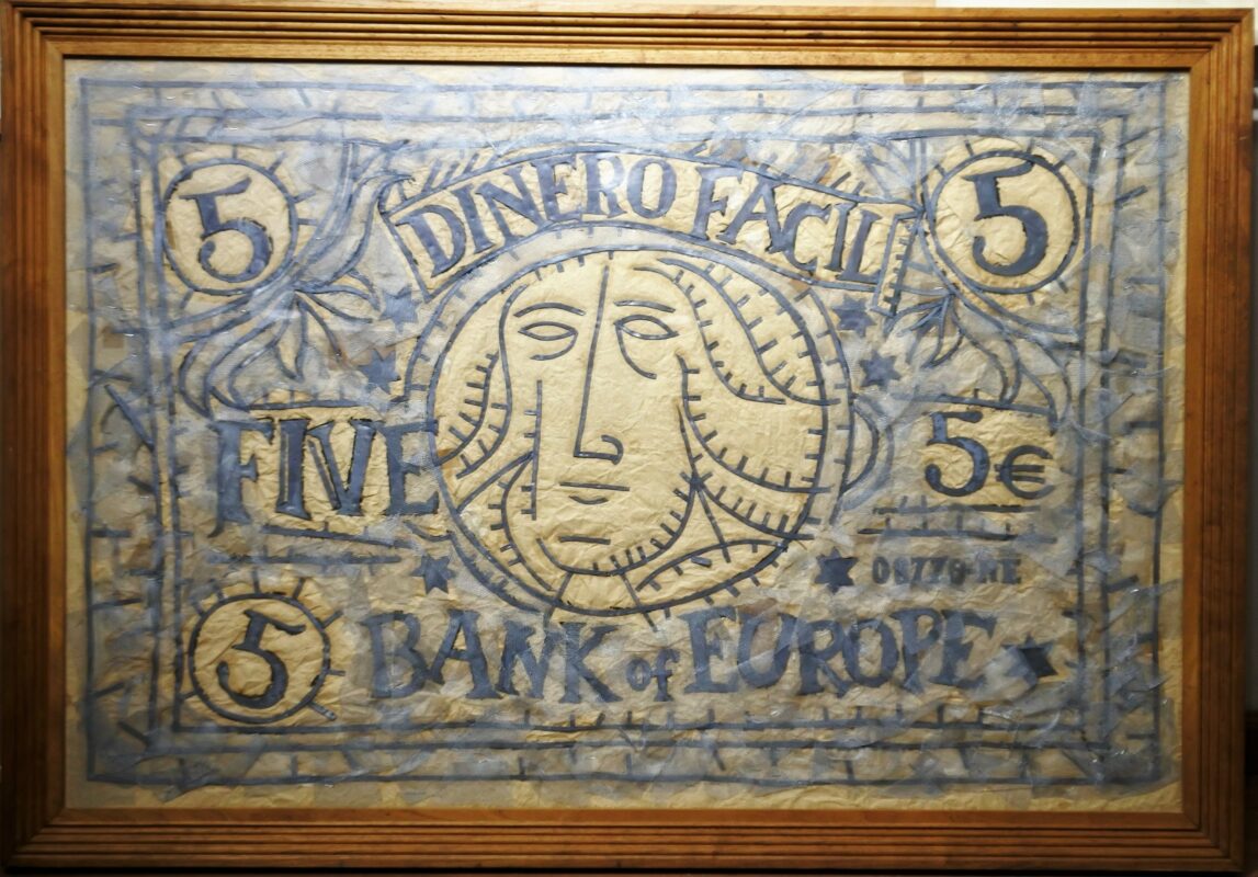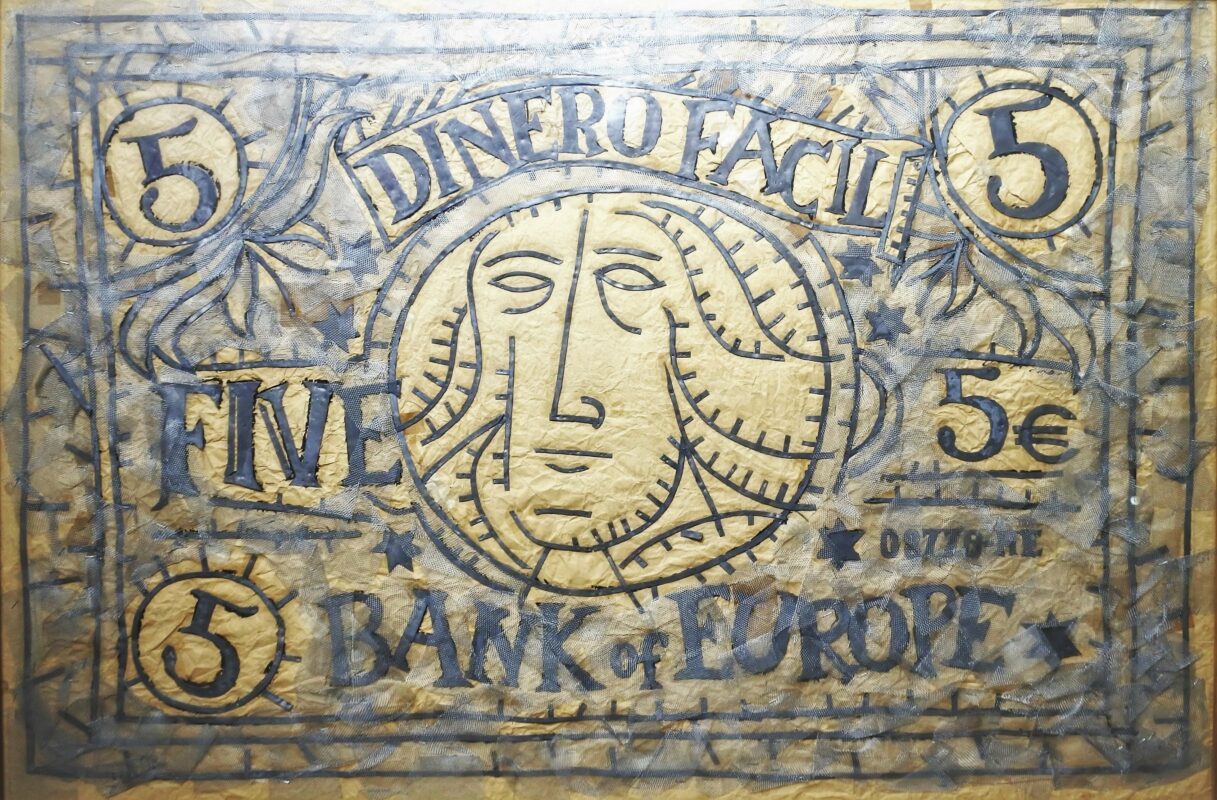 Fernando Bellver – «Dinero fácil» técnica mixta, plomo y collage, enmarcado