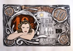 Fernando Bellver, Easy money, 10 €uros, grabado aguafuerte, edición 100 ejemplares, numerado y firmado a lápiz, 75×105 cms.