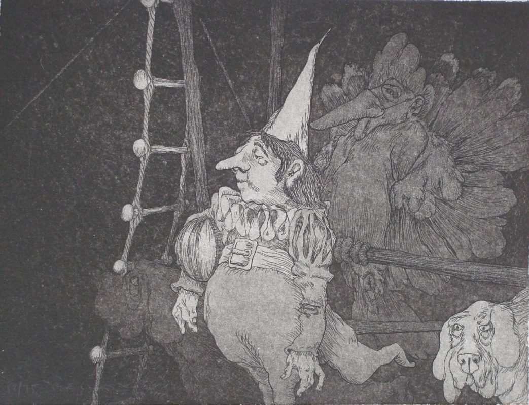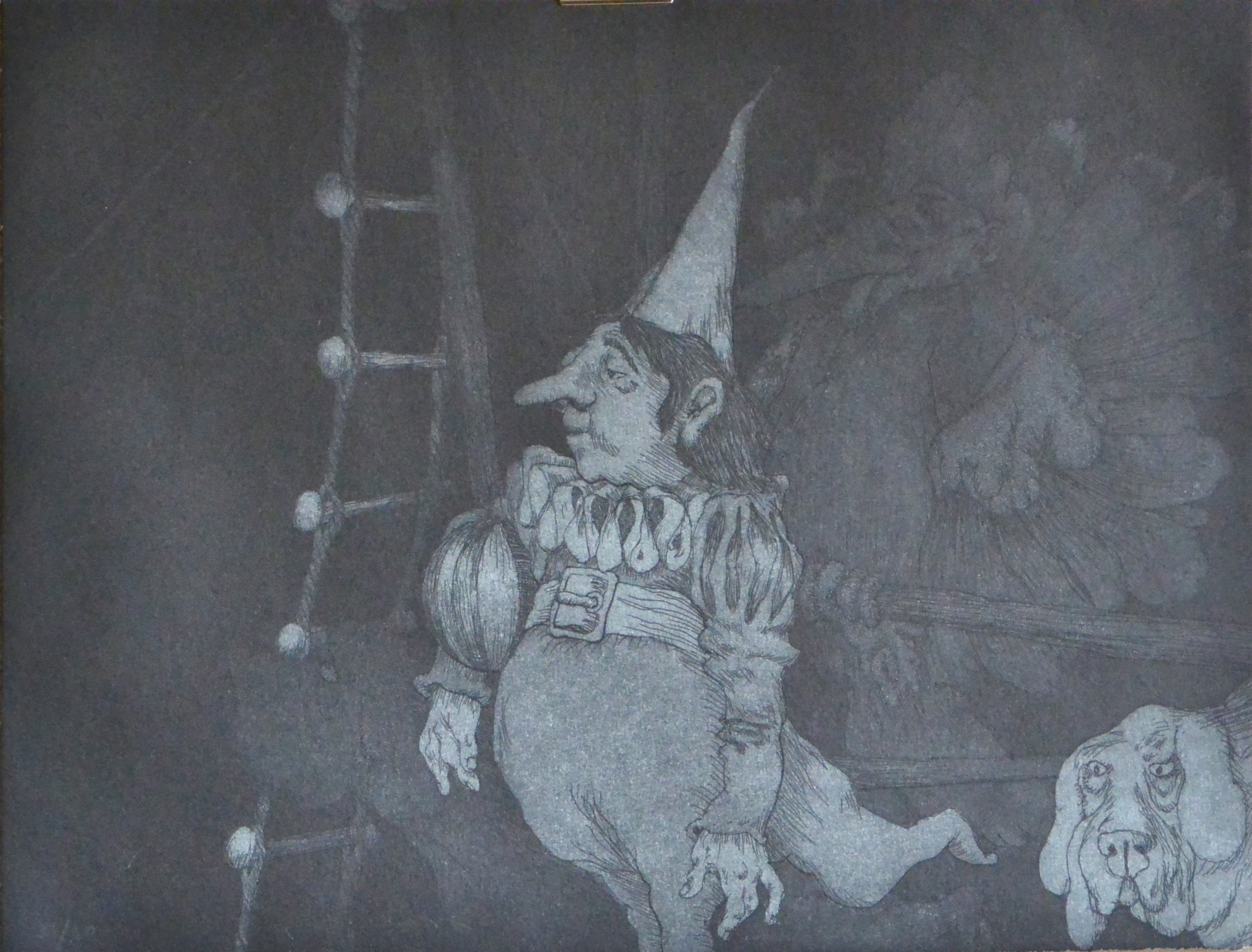 Fernando Bellver, En el circo, grabado aguafuerte, edición 50 ejemplares, numerado y firmado a lápiz, 24×31,50 cms.