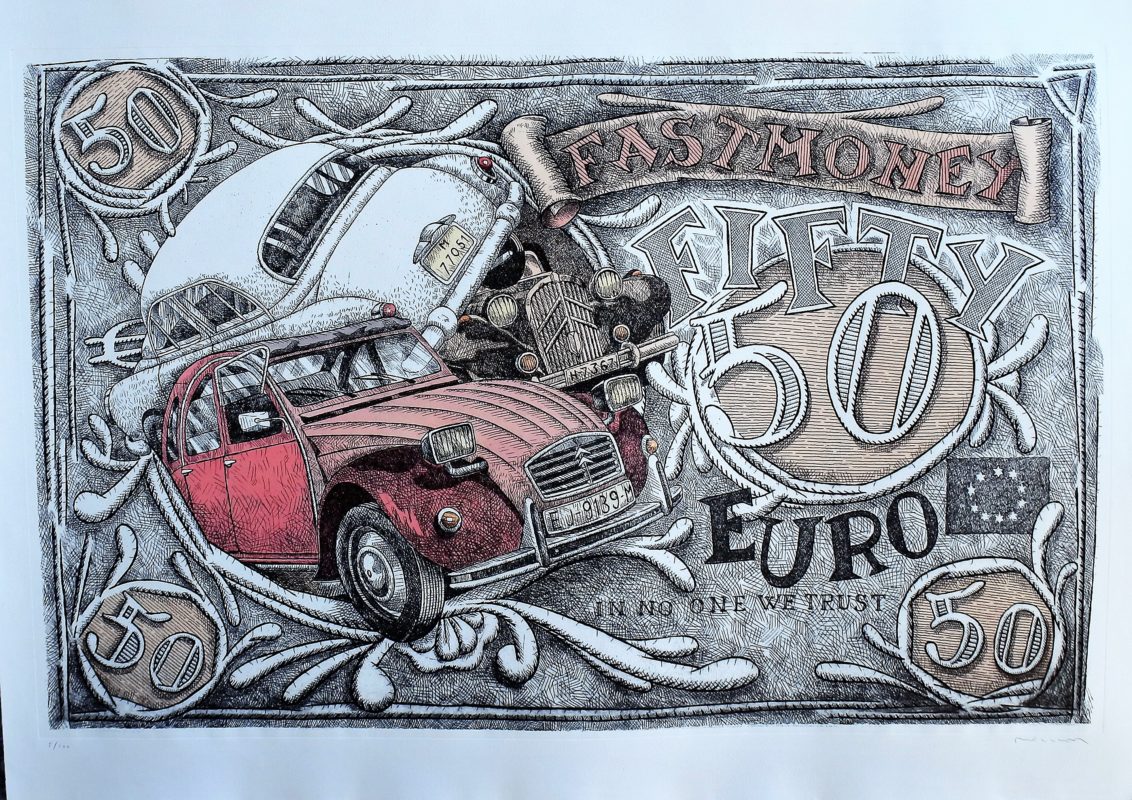 Rafael Canogar - "Composición con perro" litografía y fotolito