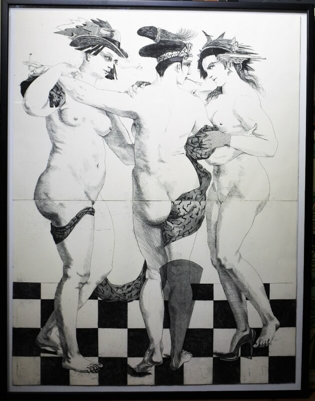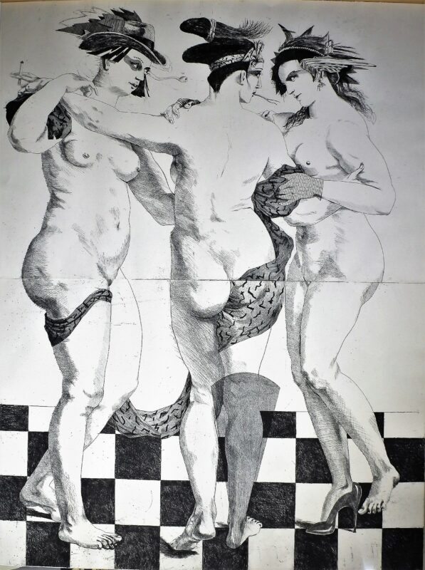 Fernando Bellver, Las tres gracias, grabado aguafuerte, edición 15 ejemplares, numerado y firmado a lápiz, enmarcado, grabado128x98 cms. y marco 137×107 cms.