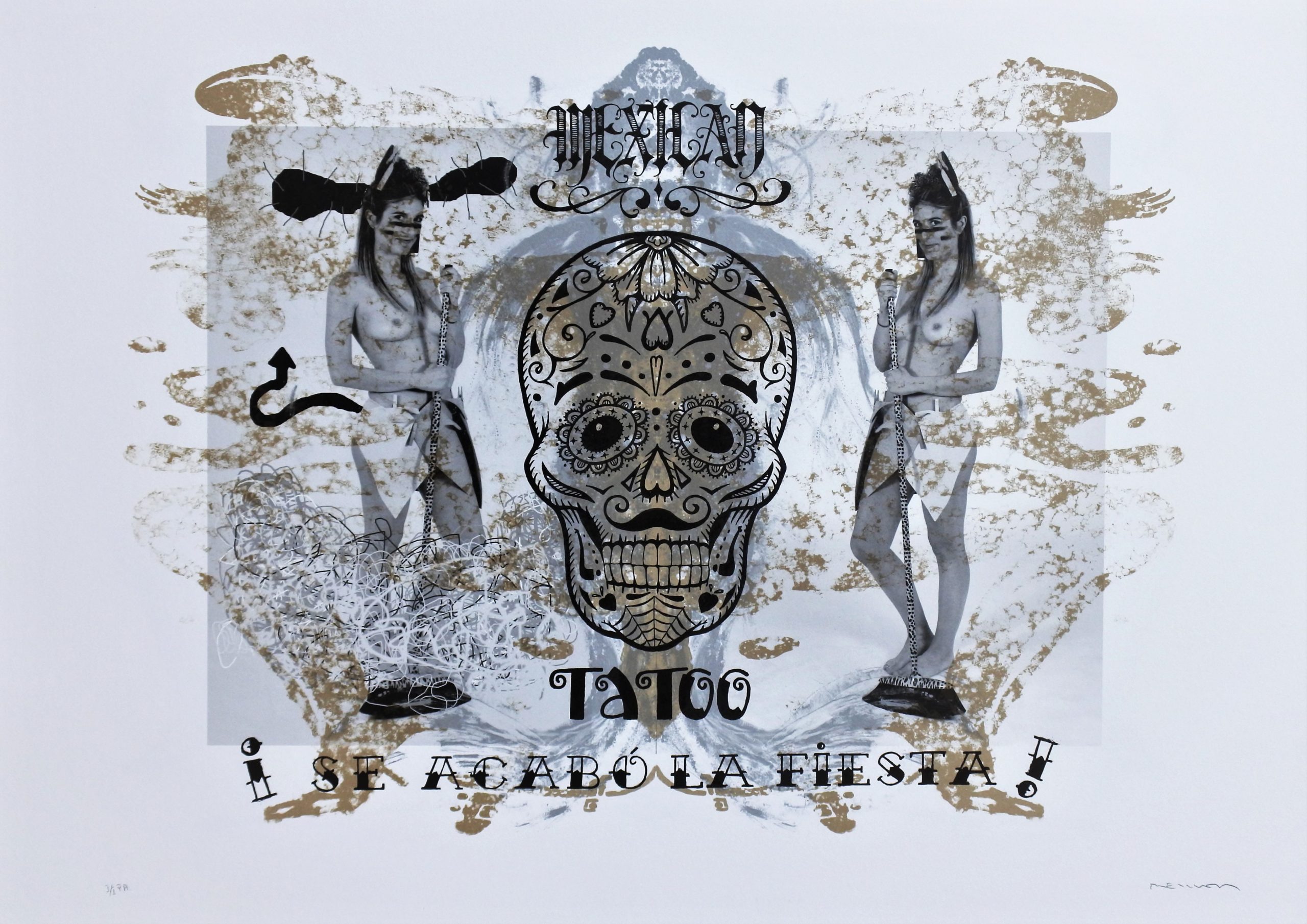 Fernando Bellver, Se acabó la fiesta!, Mexican Tatoo II, litografia y fotolitografia, edición 10 ejemplares, numerado y firmado a lápiz, 70×100 cms.