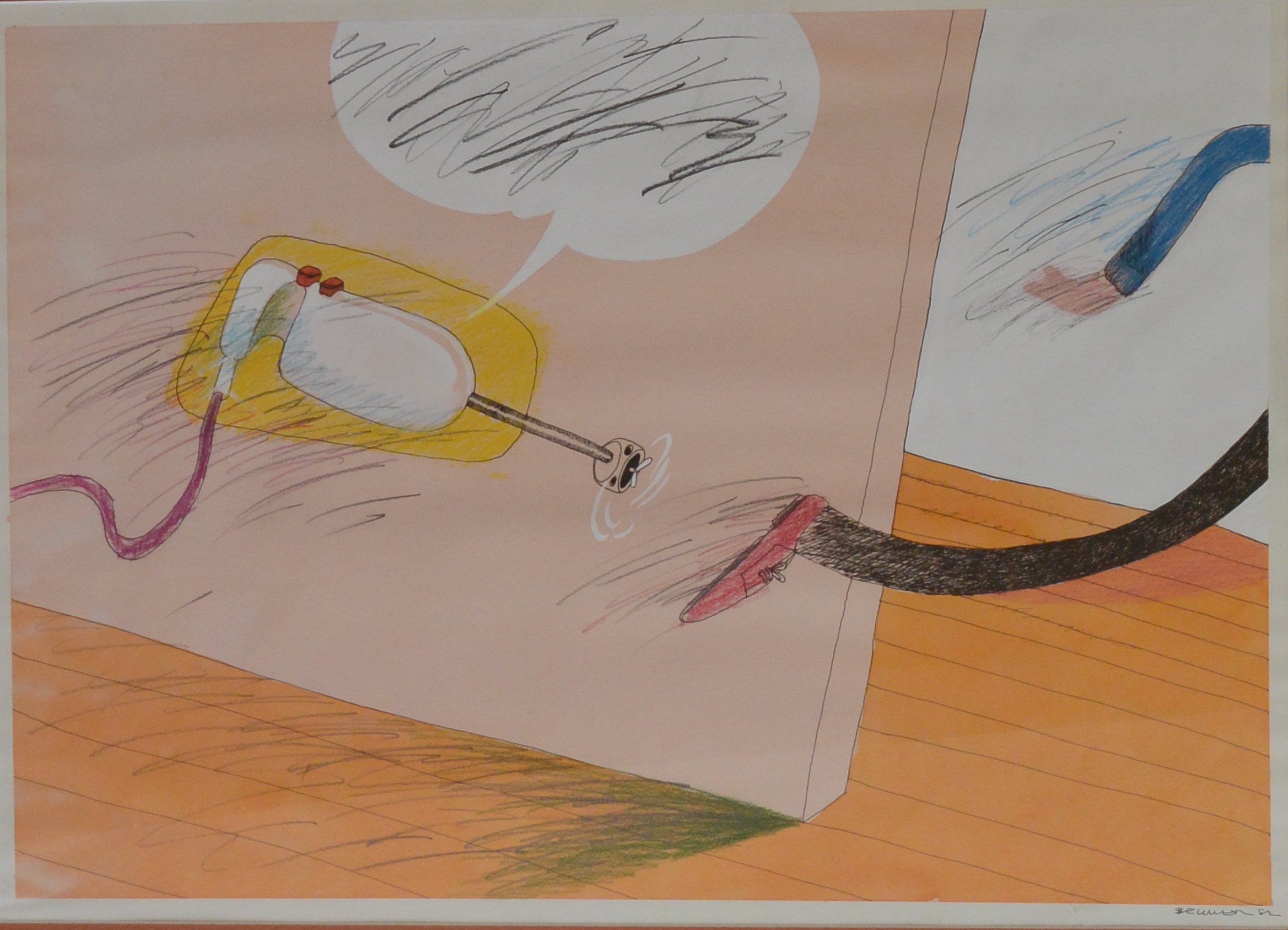 Fernando Bellver, Minipimer rebelde, dibujo original, técnica mixta cartulina, enmarcado, dibujo 55×75 cms y marco 67×82 cms.