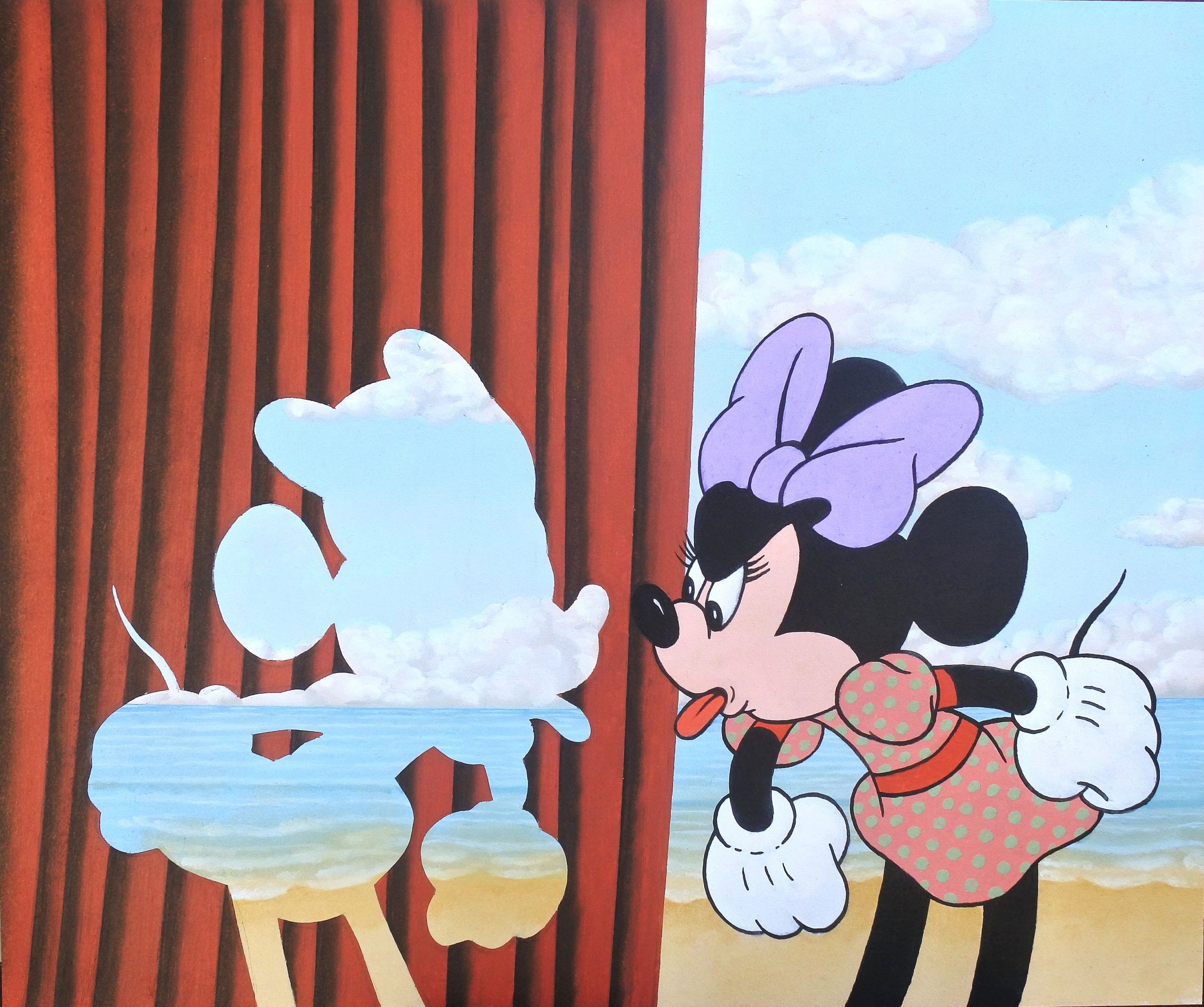 Fernando Bellver, Minnie frente al mar, pintura original oleo sobre tablero dm, 50×60 cms.