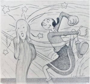Fernando Bellver, Olivia-Munch, dibujo original grafito sobre acetato de papel, preparatorio para grabado, 49×54 cms.