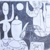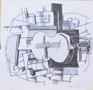 Fernando Bellver, Renault 4L-Georges Braque, serie coches bodegón, dibujo original grafito acetato papel, 35×36 cms. Preparatorio para aguafuerte