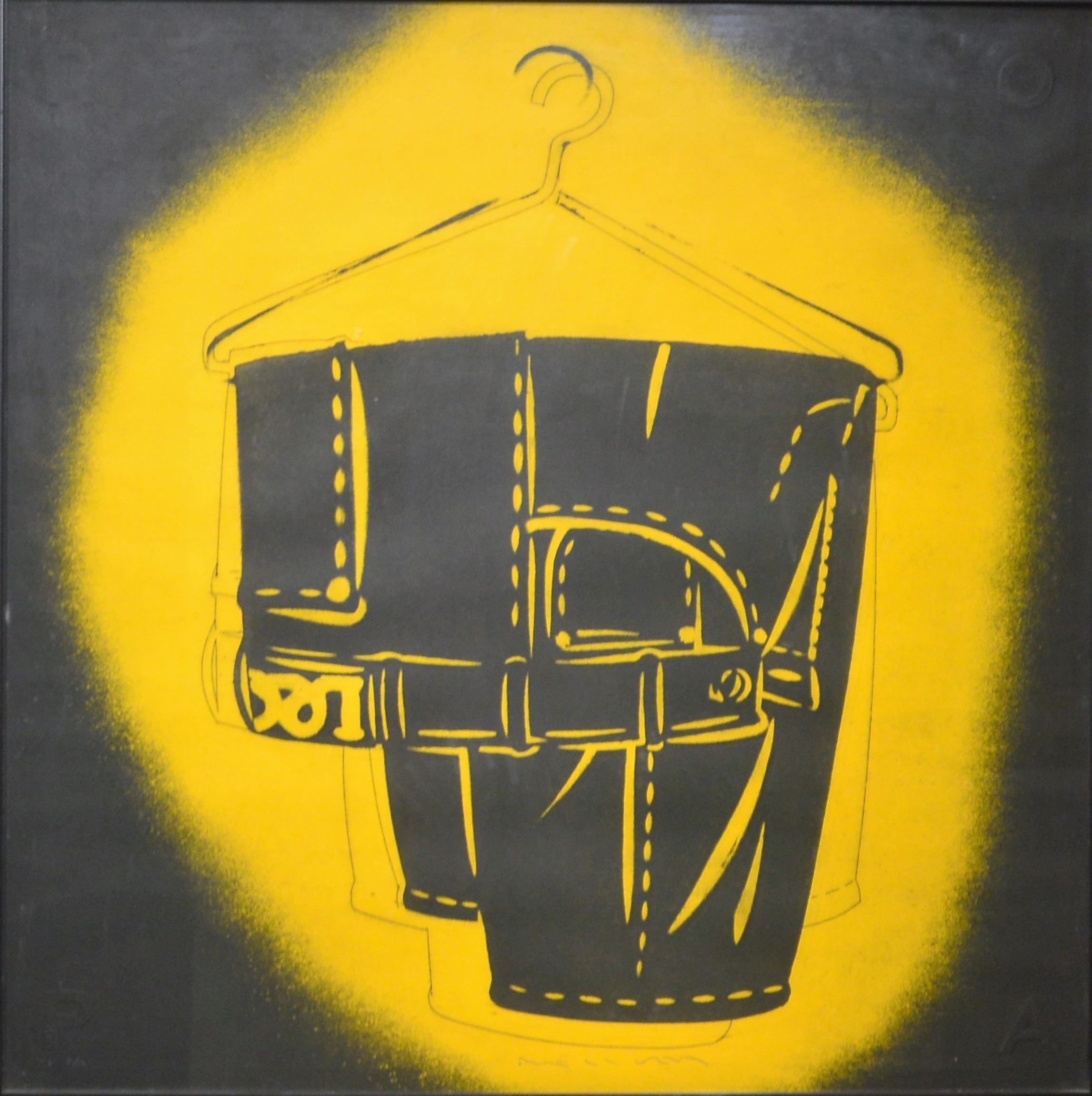 Fernando Bellver, Serie Ropa, pantalones, grabado, numerado p.a. y firmado a lápiz, enmarcado, grabado 70×70 cms. y marco 73×73 cms.