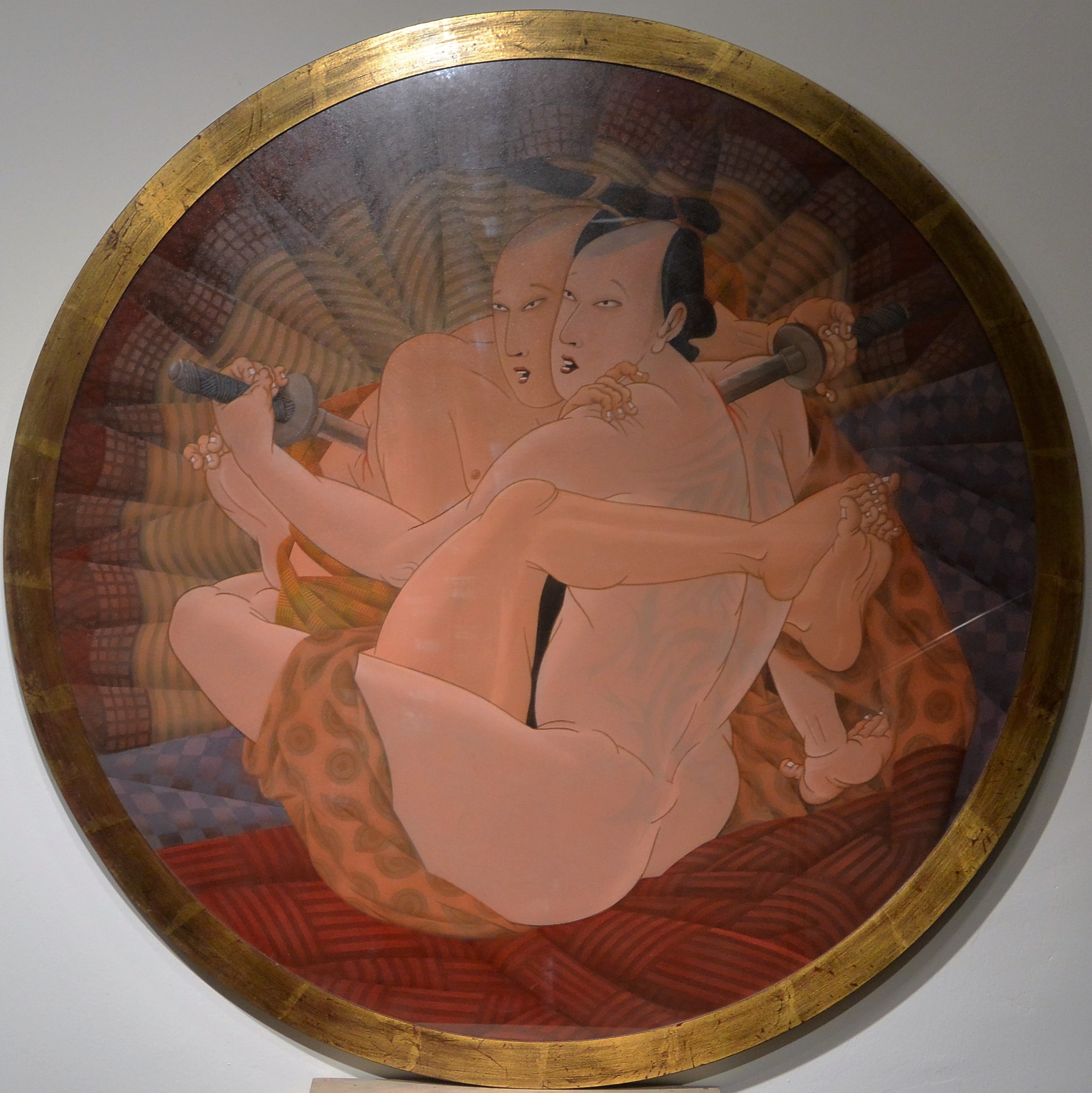 Fernando Bellver, Shunga art series, Samurais, pintura oleo sobre tablero dm circular, enmarcado, diámetro pintura 105 cms. y marco 114 cms.