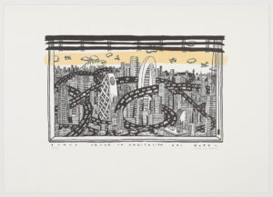 Fernando Bellver, Tokyo desde la habitación del hotel, litografía, edición 150 ejemplares, numerado y firmado a lápiz, 50×70 cms.