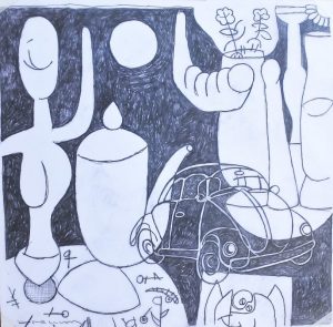 Fernando Bellver, VolksWagen Beetle-Paul Klee, serie coches bodegón, dibujo original grafito acetato papel, 35×36 cms. preparatorio para aguafuerte