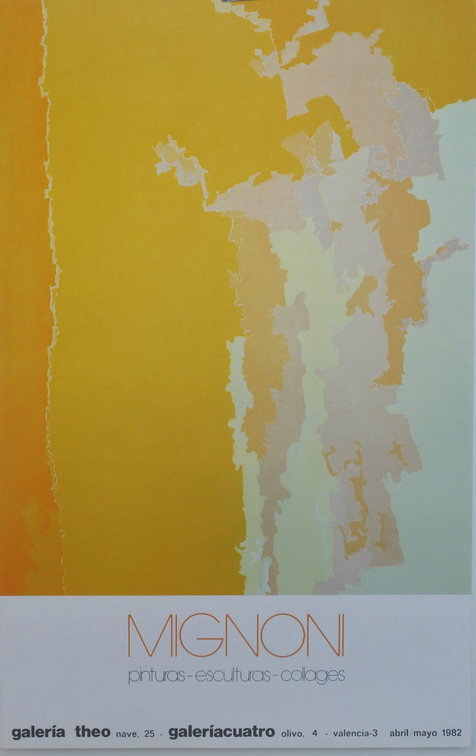 Fernando Mignoni – «Pinturas, esculturas, collages» cartel original exposición en Galería Theo y Galeria Cuatro Valencia en 1982