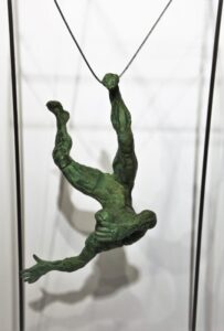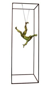 Fernando Suarez Reguera, Gravitación III, verde, escultura bronce y hierro, 2/15 ejemplares, 80x26x26 cms.