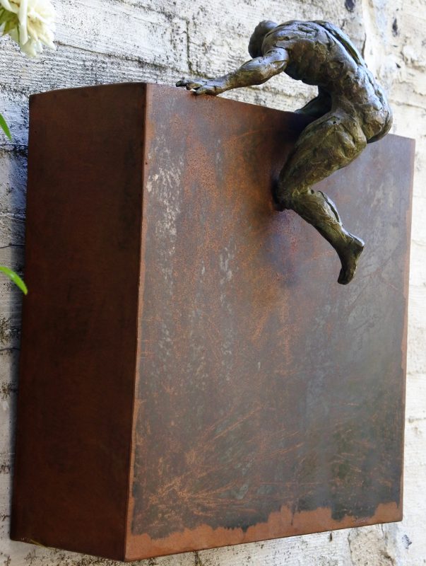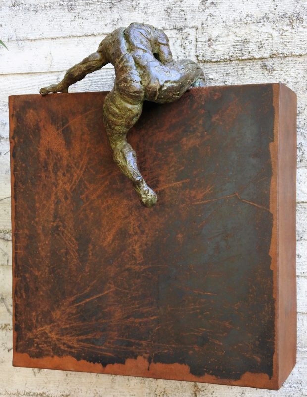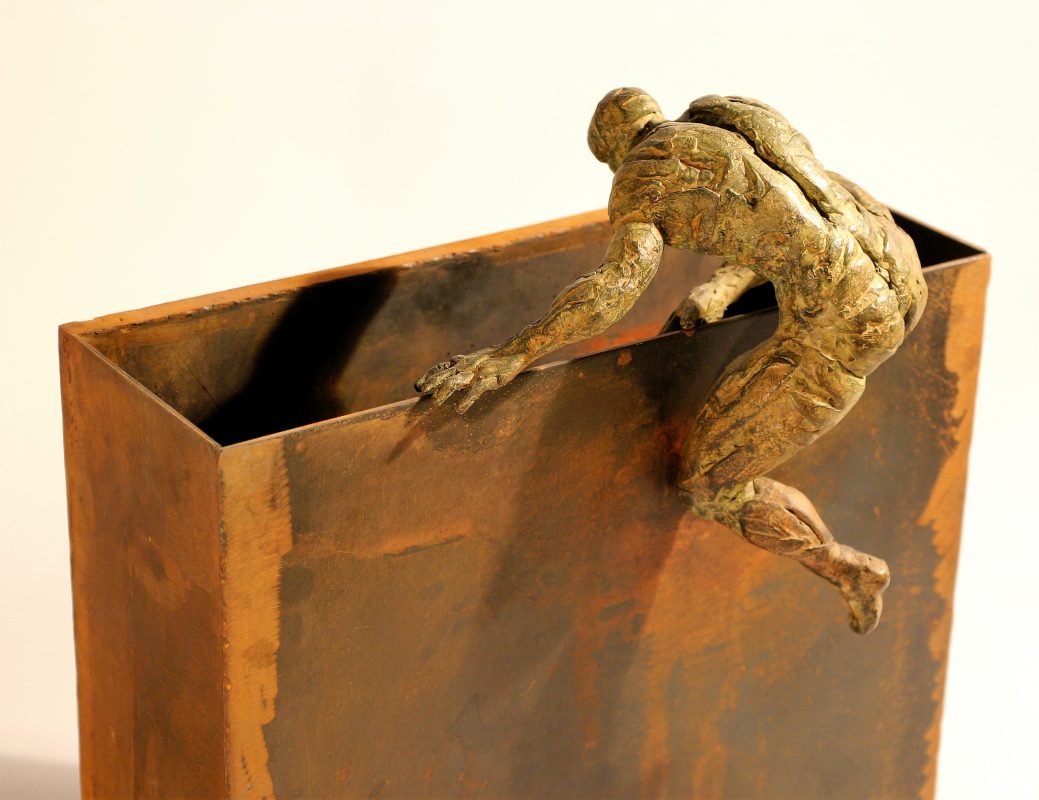 Fernando Suarez Reguera, Hombre-valla, escultura bronce y hierro, obra seriada 50 ejemplares, 35x20x46 cms.