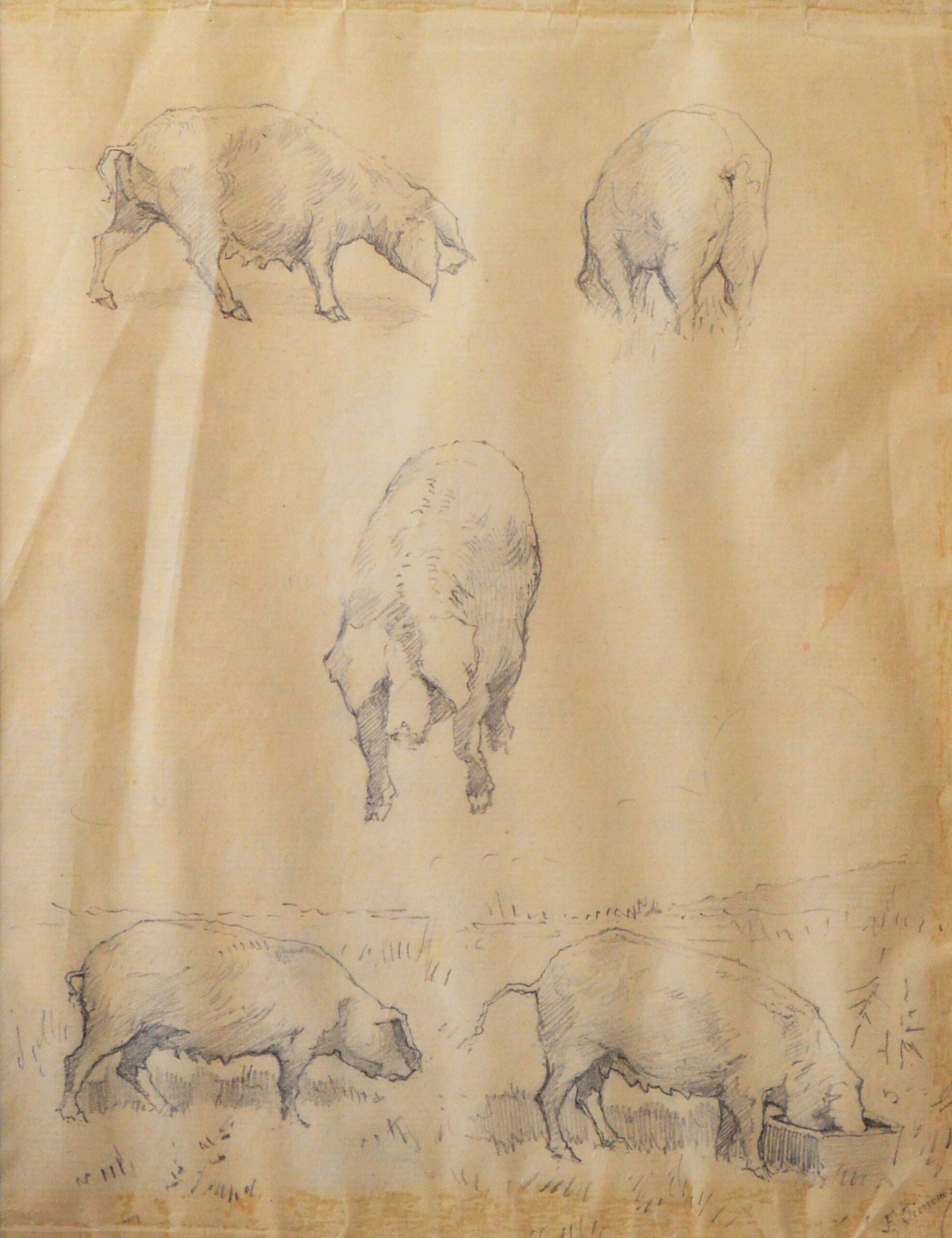 Francisco Jimenez, Estudios de cerdos, dibujo lápiz papel, enmarcado, dibujo 26×20 cms. y marco 39×33 cms. Marco incluido