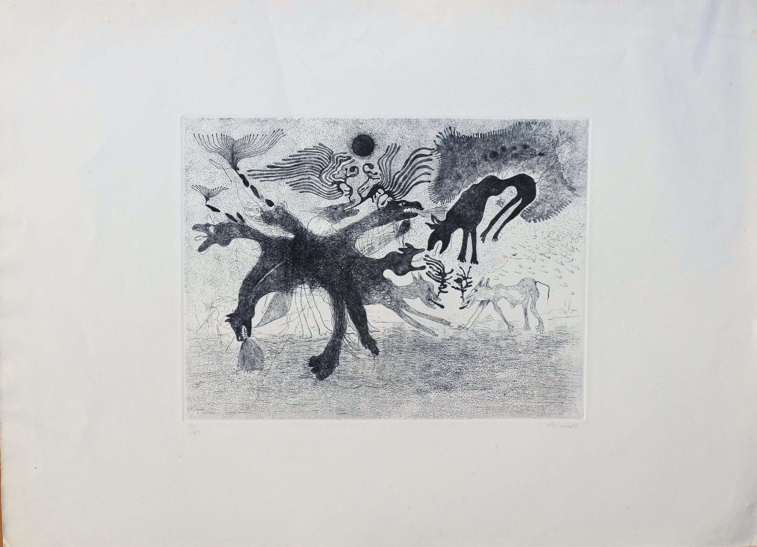 Francisco Peinado, Animales feroces, grabado aguafuerte, edición 45 ejemplares, numerado y firmado a lápiz, plancha 30×40 cms. y papel 55×77 cms.