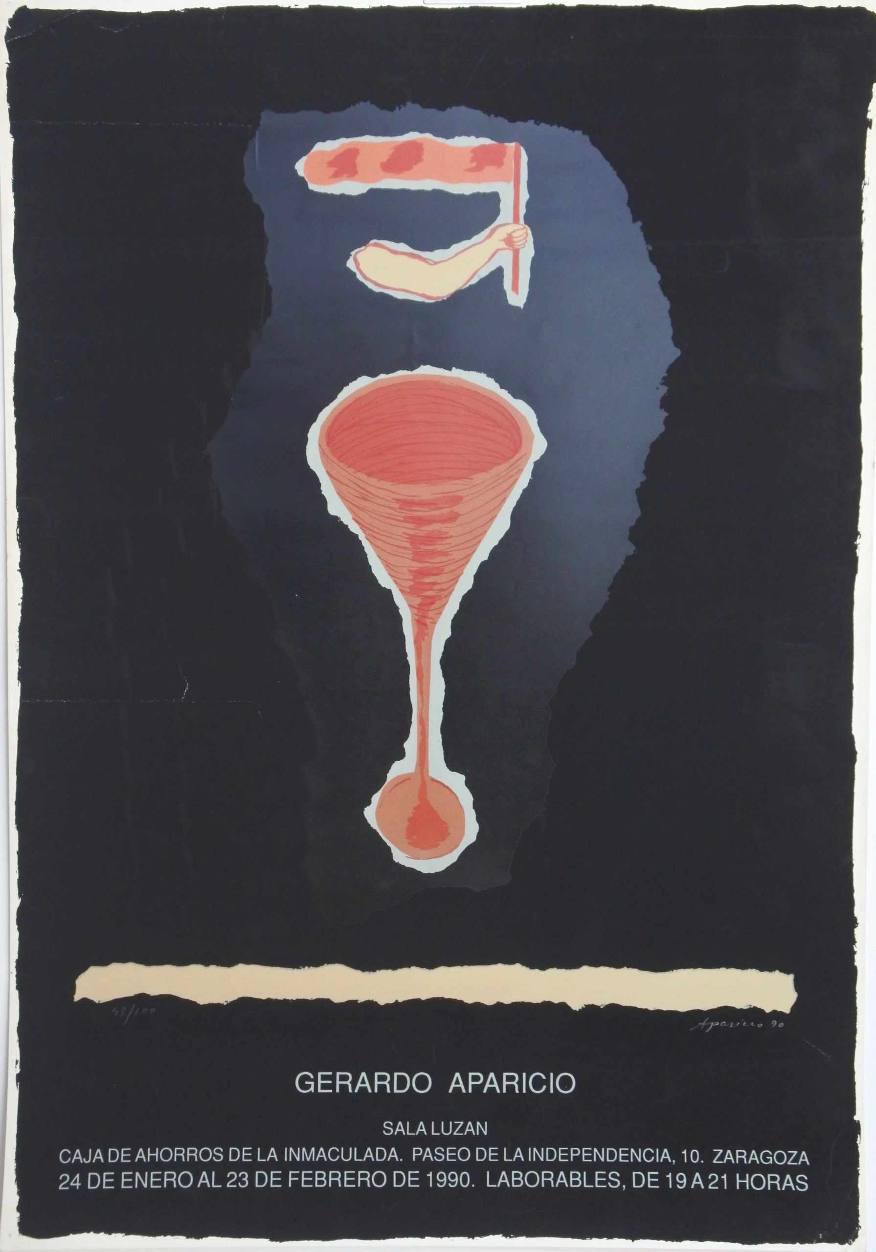 Gerardo Aparicio, Exposición 1990, serigrafia original exposición en Sala Luzan Zaragoza en 1990, edición 100 ejemplares. numerado y firmado a lápiz, 50×35 cms.