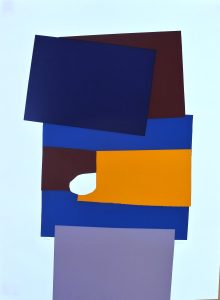Gerardo Rueda, Composición S.T., serigrafia, edición 460 ejemplares numerada y firmada a lápiz, 76×56 cms. Editada en 1.991 por el 25 aniversario del museo de arte abstracto español en Cuenca