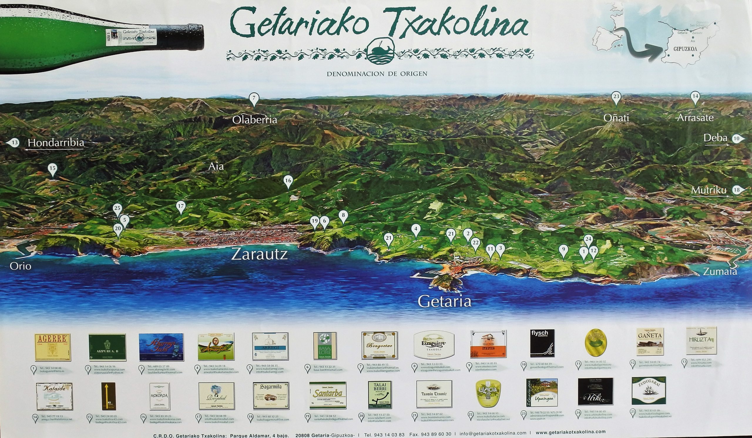 Gipuzkoa, Getaria, Getariako Txakolina, denominación de origen, cartel promoción turística, 40×69 cms.