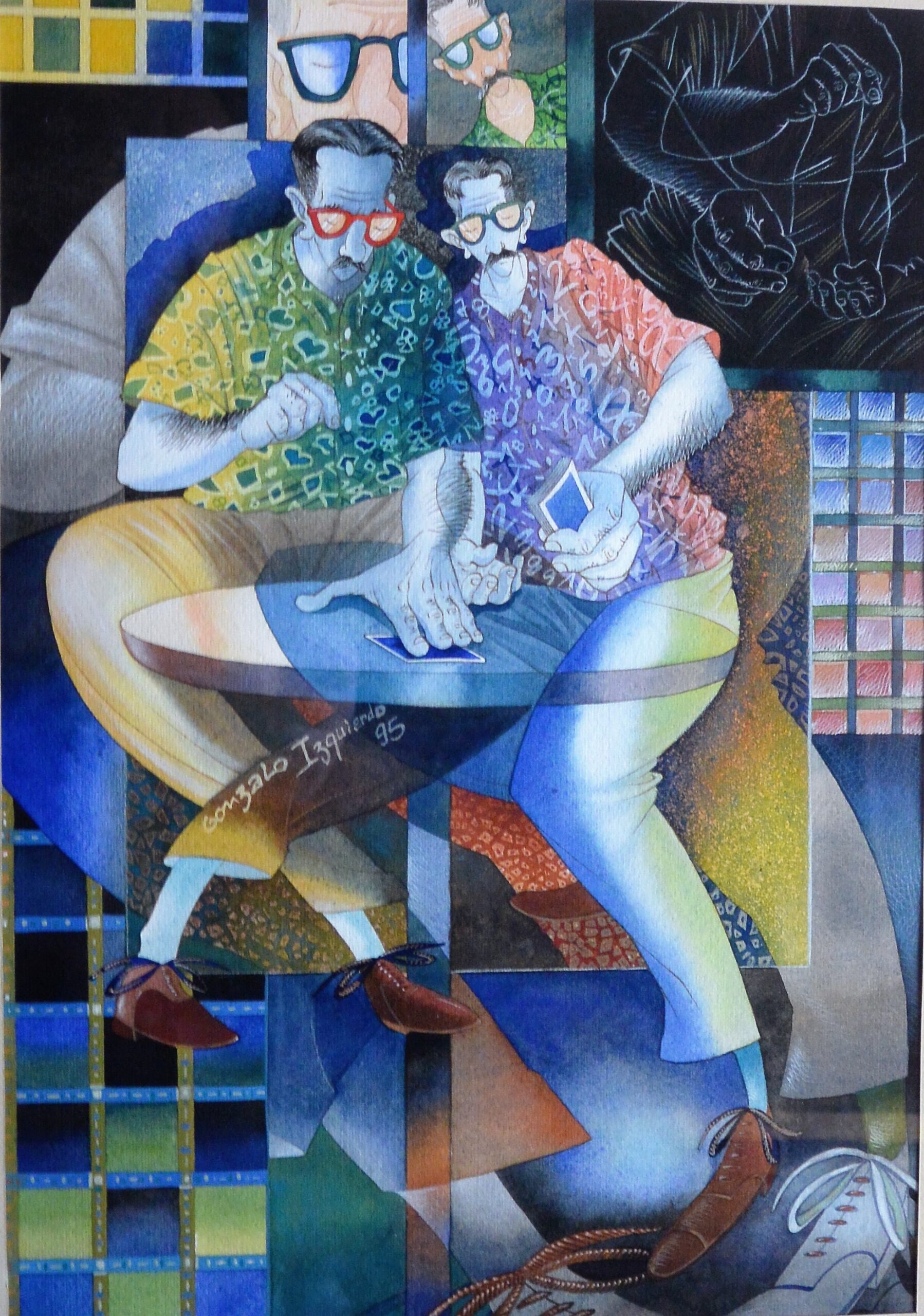 Gonzalo Izquierdo, Solitario, ilustración, dibujo lápiz y acuarela papel, enmarcado, dibujo 38×26 cms. y marco 65×48 cms.