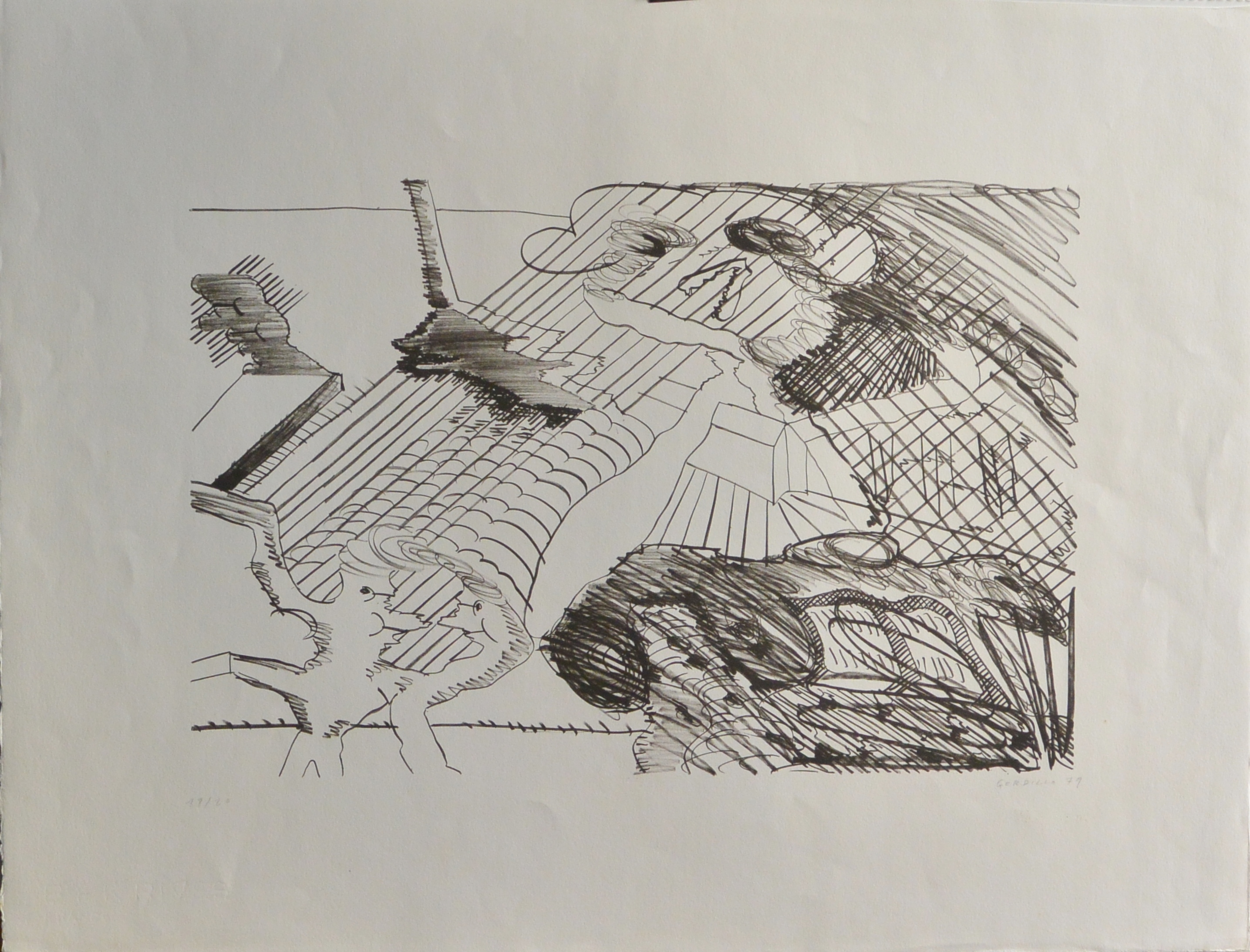 Gordillo Luis, composición blanco y negro III, litografía, numerada y firmada a lápiz, 50×65 cms.