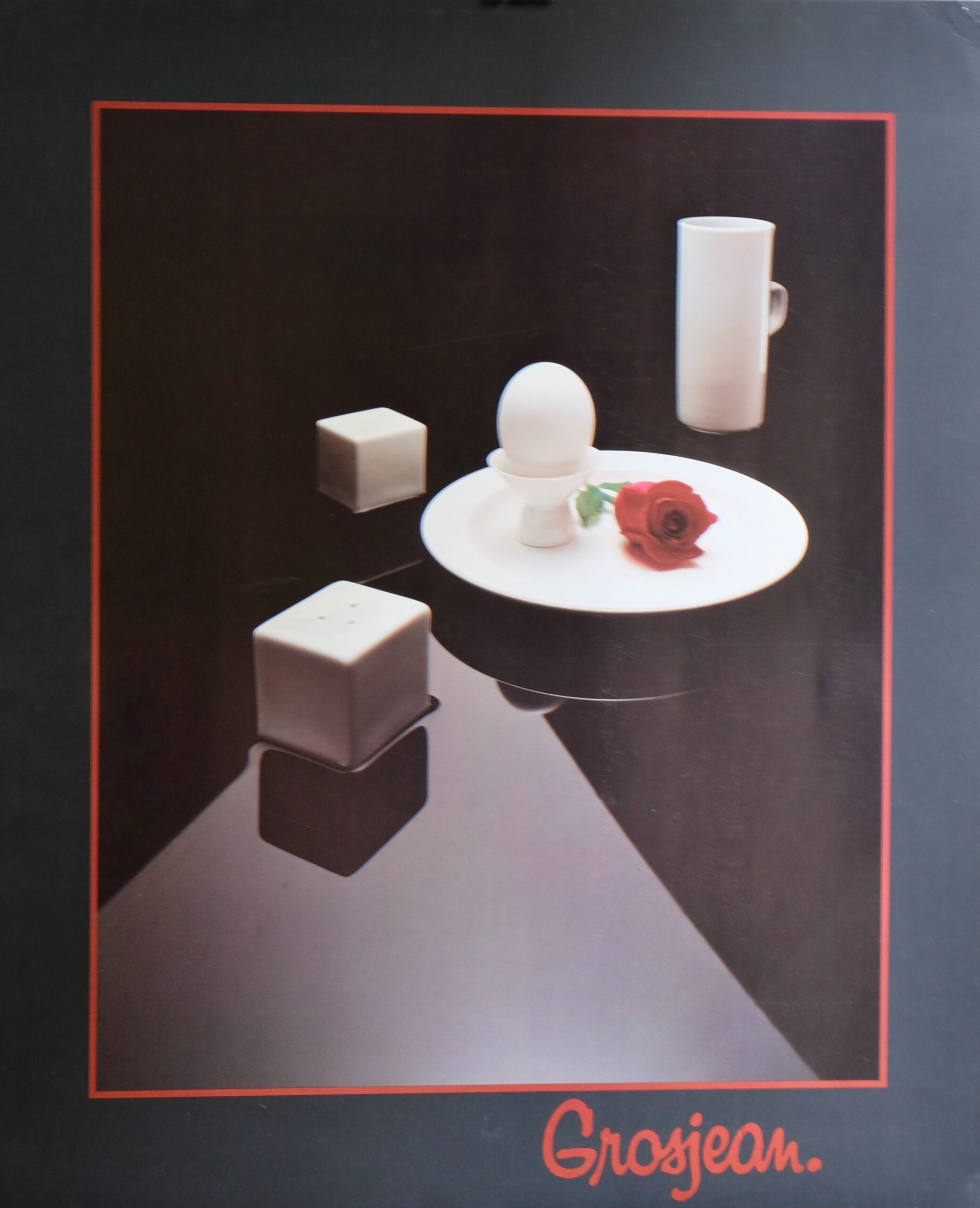 Grosjean, Still life egg and rose, 61×51 cms.
