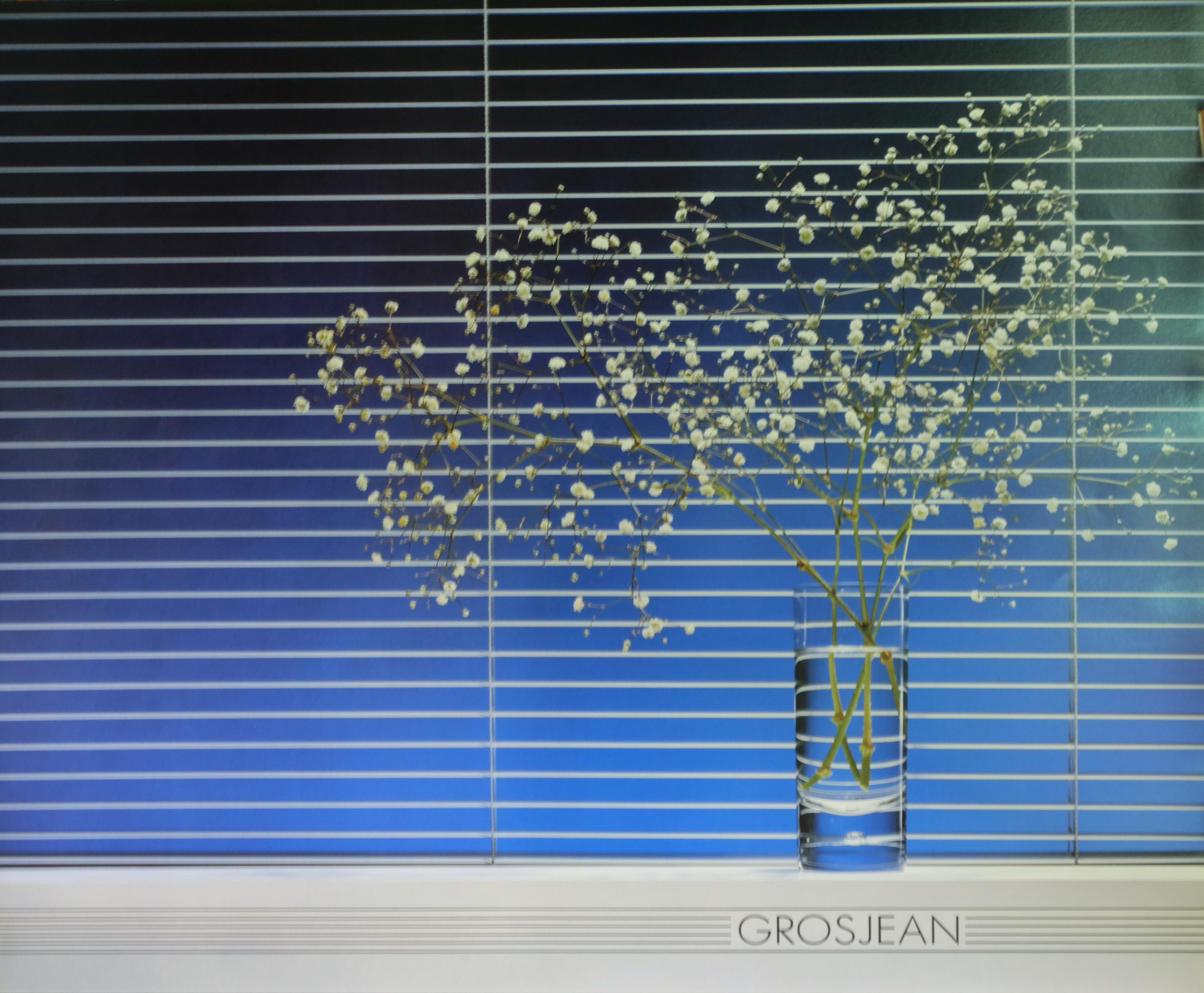 Grosjean, Vaso con flores fondo azul, cartel original editado por Art Source Canadá, 76×63 cms.