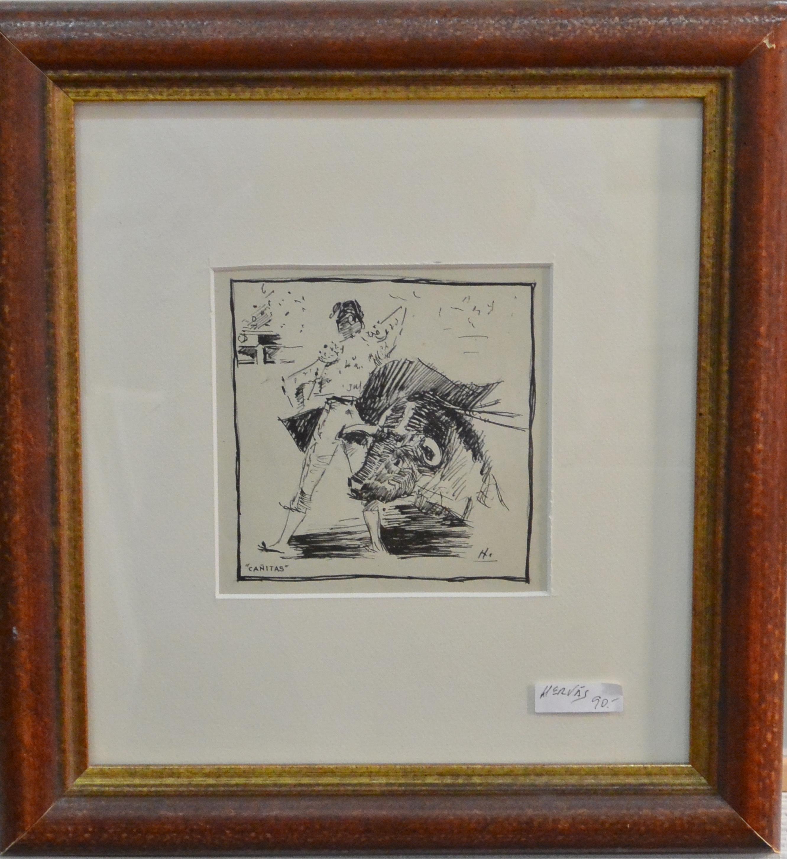 Hervás, Cañitas, dibujo tinta china papel, 14×14 cms. y marco 37×34 cms. marco incluido