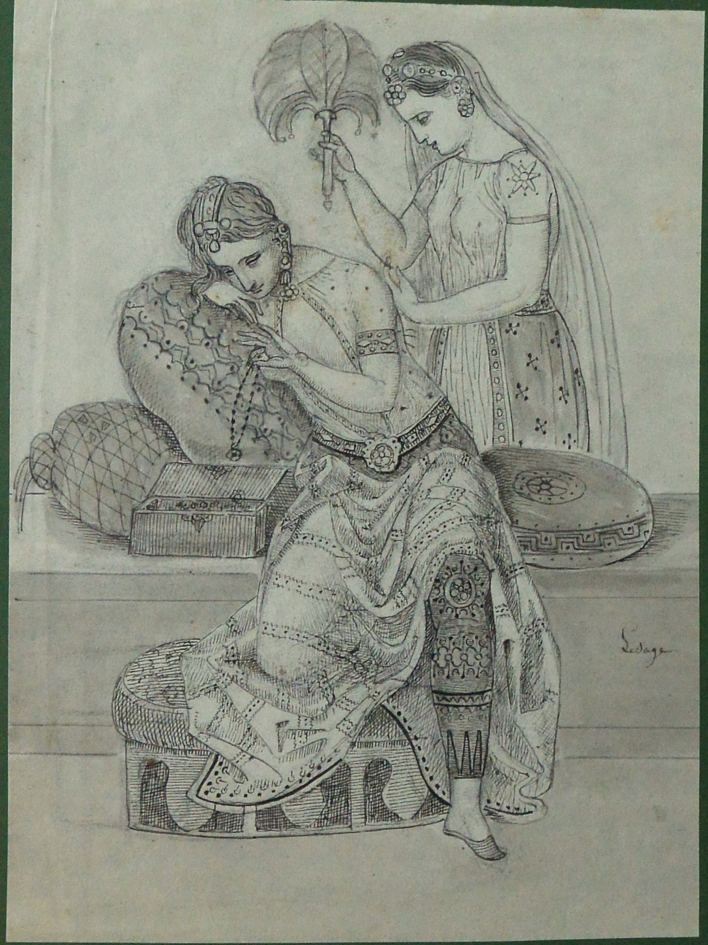 Augustin Lesage, Mujer hindú, dibujo lápiz papel principios siglo XX, enmarcado, dibujo 20×15 cms. y marco 25,50×30 cms.