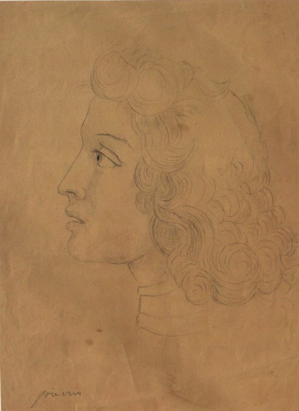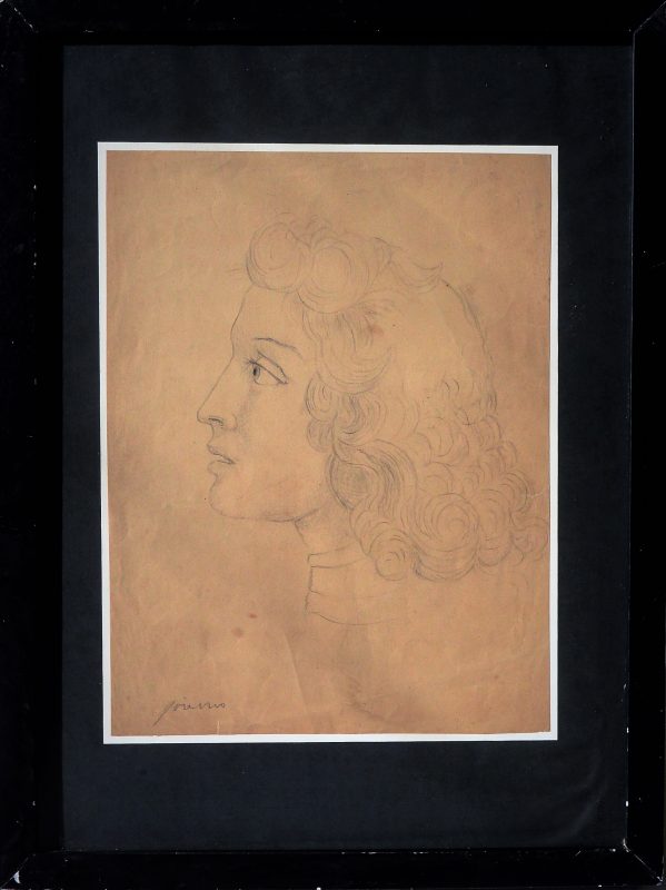 Ilegible, Perfil joven renacentista, dibujo lápiz papel, enmarcado, dibujo 31×23,50 cms. y marco 47,50×36 cms.
