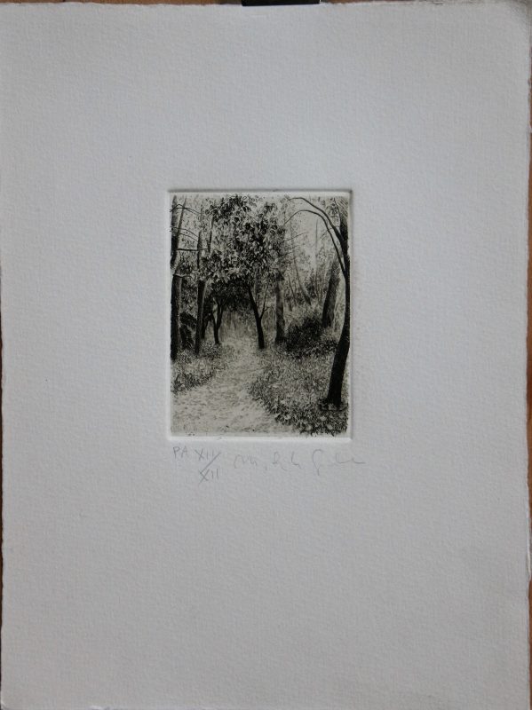 Mercedes de la Gala, Sendero, grabado aguafuerte, numerado p.a. y firmado a lápiz, plancha 9,50×7 cms. y papel 26,50×20 cms.