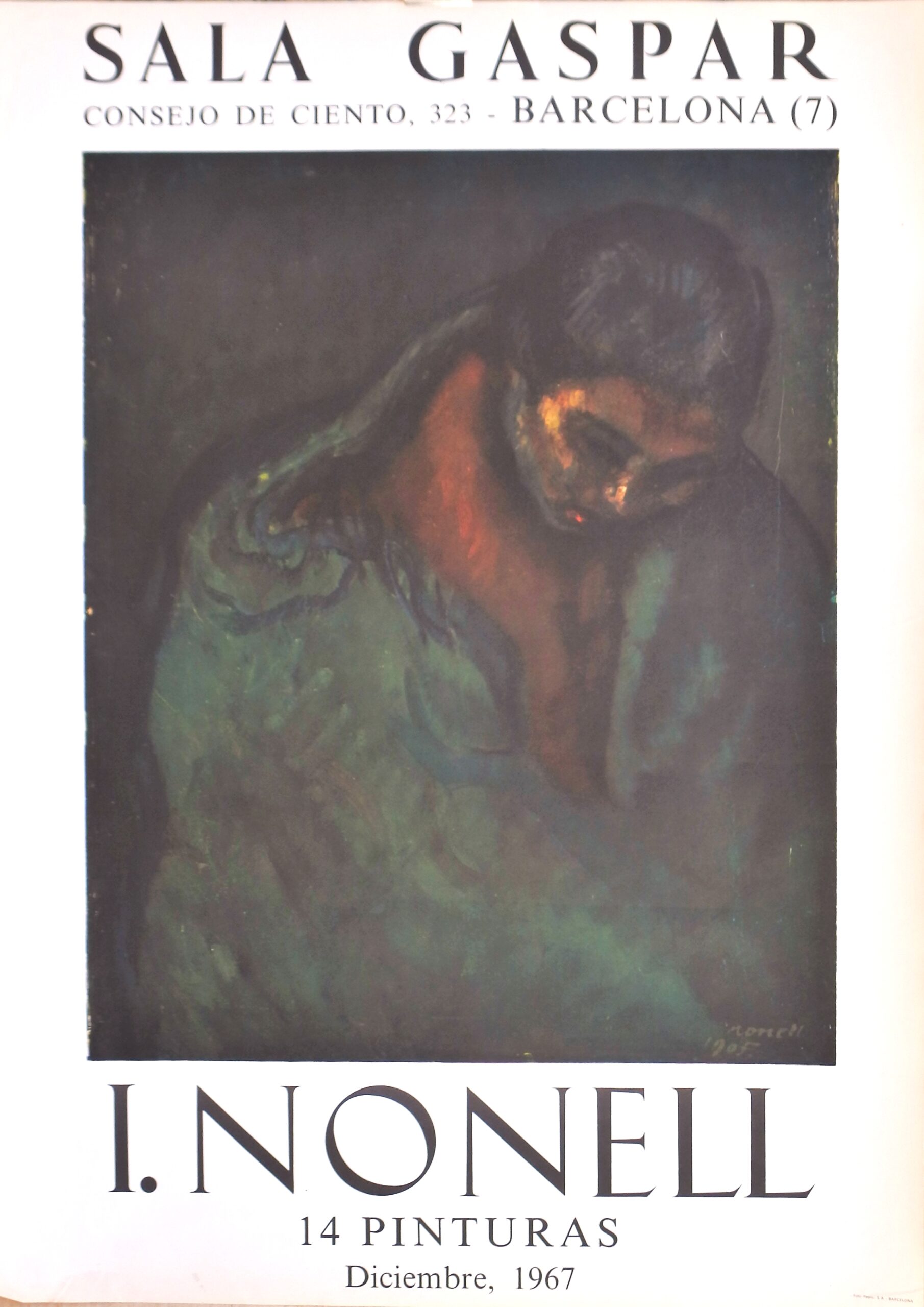 Isidro Nonell, 14 pinturas, cartel original exposición en Sala Gaspar en 1967, 76×55 cms.