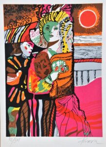 Isidro Parra, Sol Rojo, litografia, edición 375 ejemplares, numerada y firmada a lápiz, 24,50×18 cms.