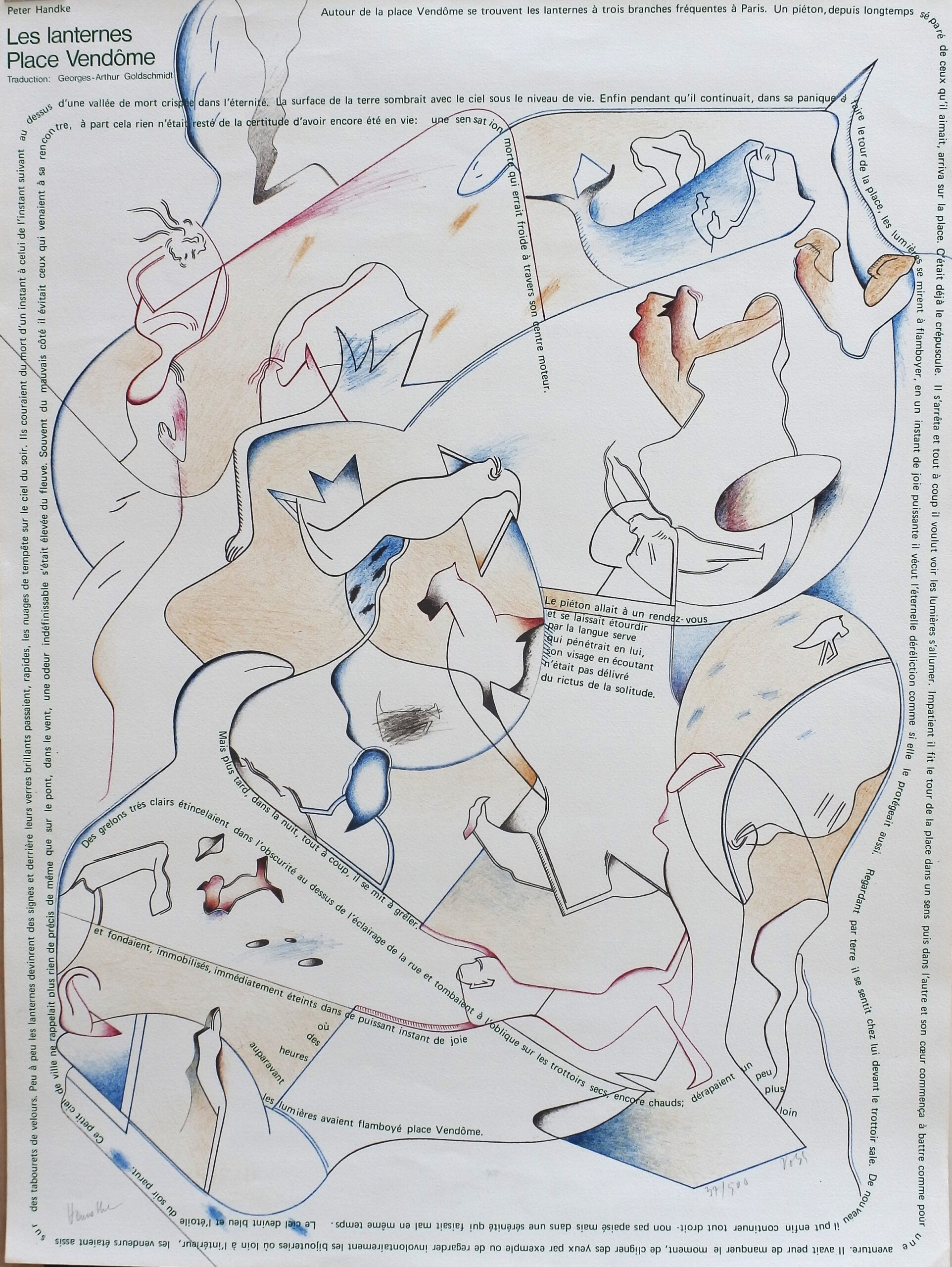 Jan Voss, Les lanternes Place Vendôme, litografia con poema de Peter Handke, edición 500 ejemplares, numerado y firmado a lápiz, 80×60 cms.