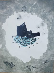 Javier de Juan, A pique, grabado aguafuerte, edición 75 ejemplares, numerado y firmado a lápiz, 80×62 cms.