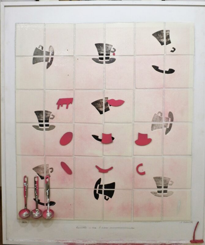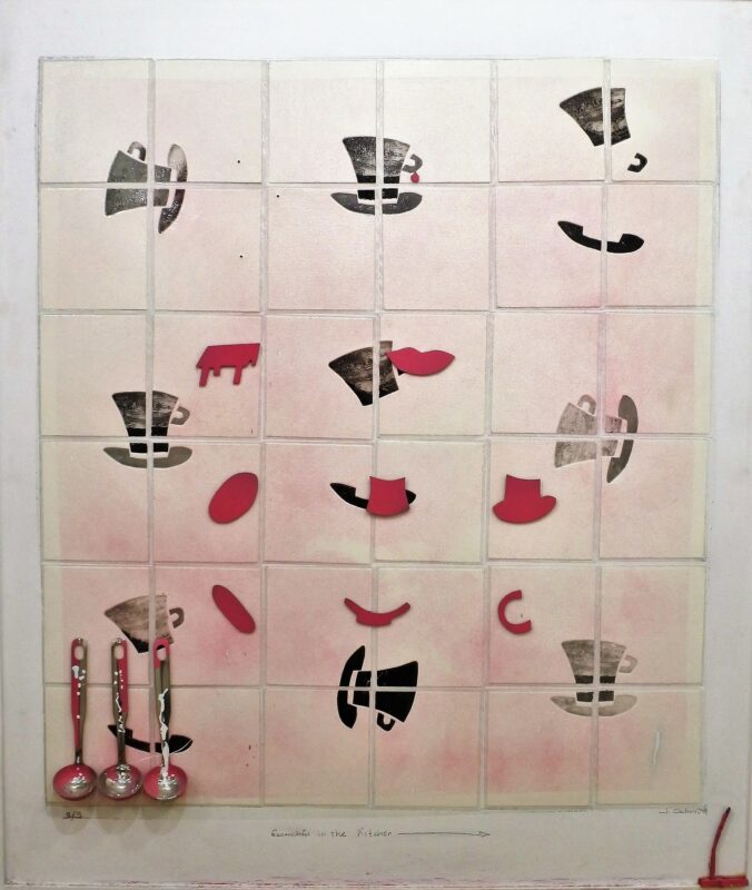 Javier Cachorro, Esconchón in the kitchen, técnica mixta y collage, enmarcado, obra 129×110 y marco 133×114 cms.