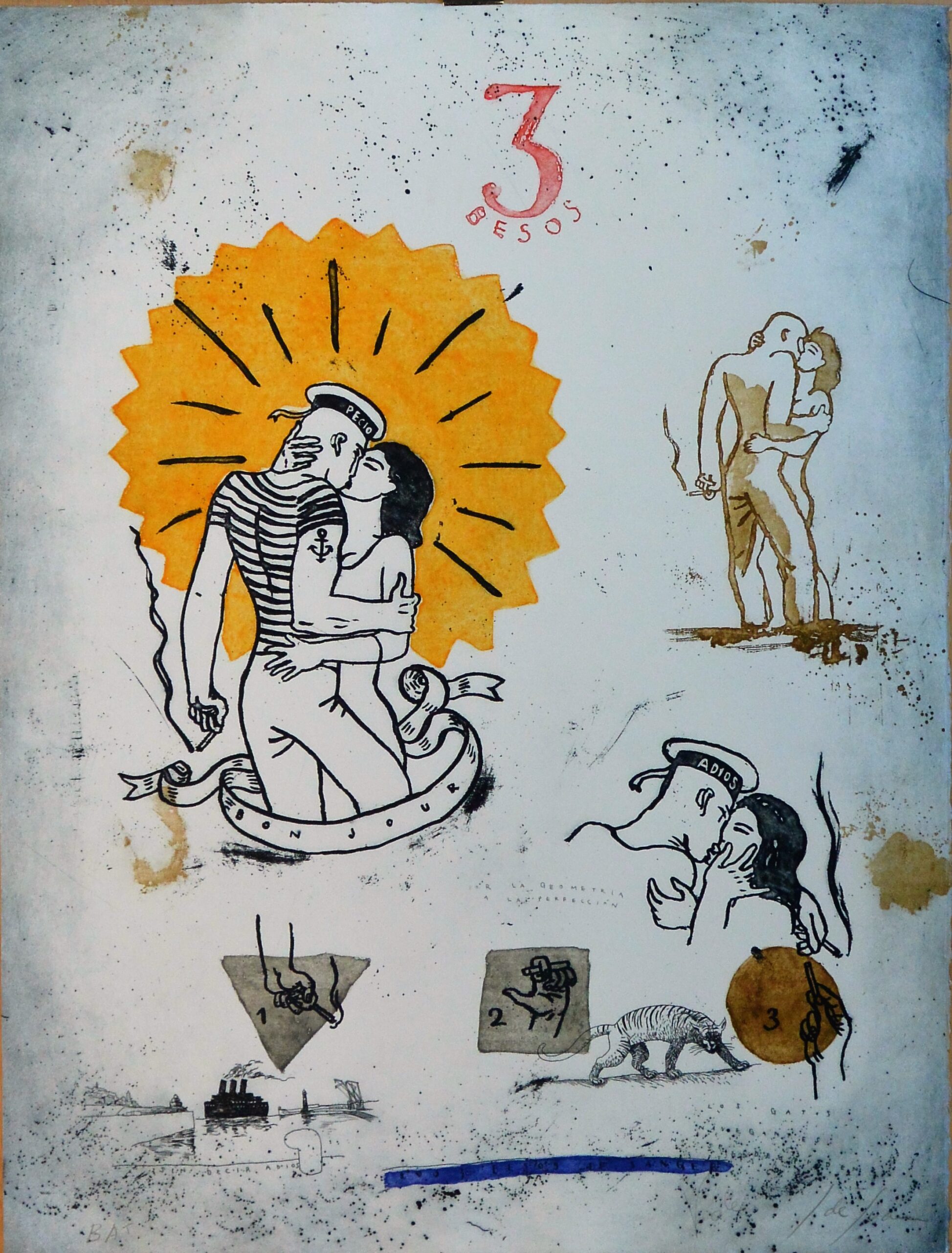 Javier de Juan, 3 besos, grabado, numerado bat y firmado a lápiz, 80×60 cms.