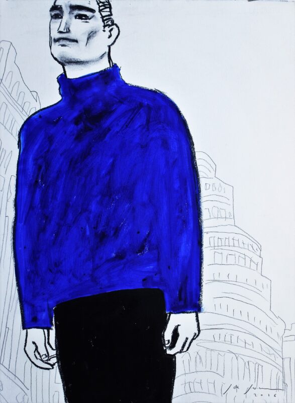 Javier de Juan, Azul Kline por la Gran Vía, dibujo original acrílico y carboncillo cartulina, 76x57cms.