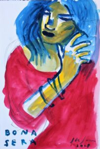 Javier de Juan, Bona sera…, dibujo original acrílico papel, 56,50×38 cms.
