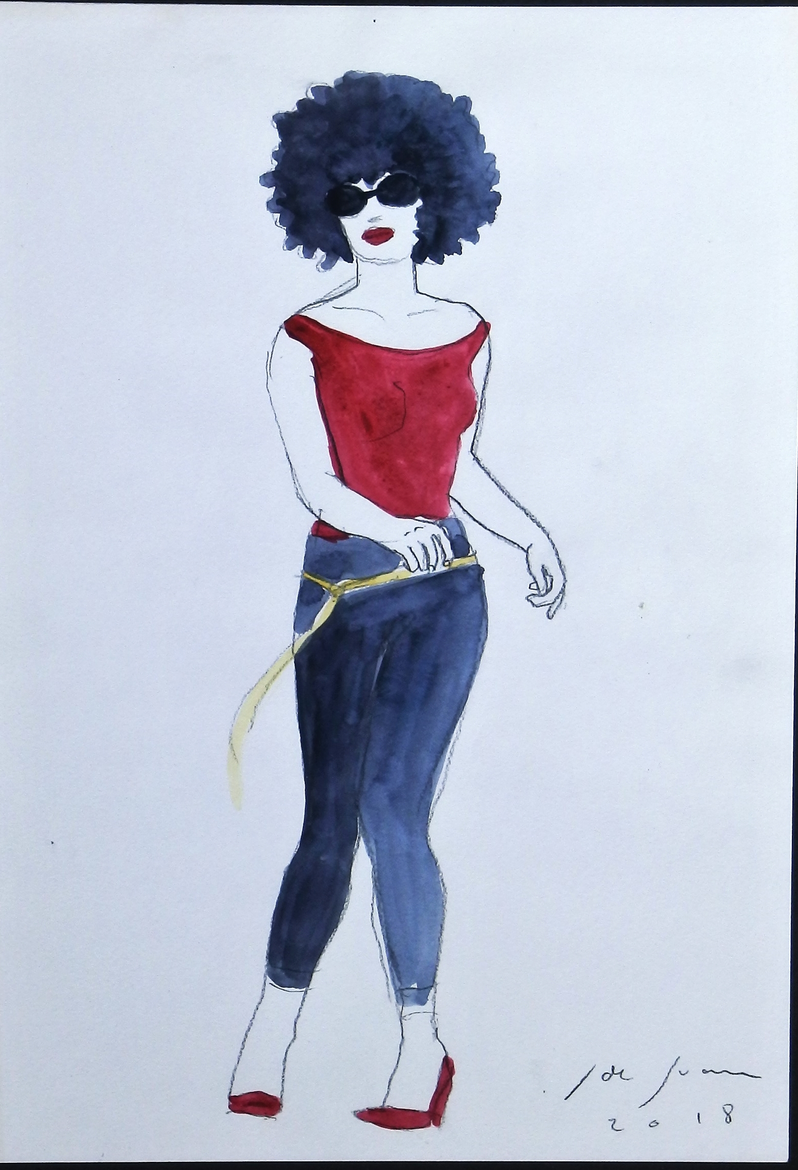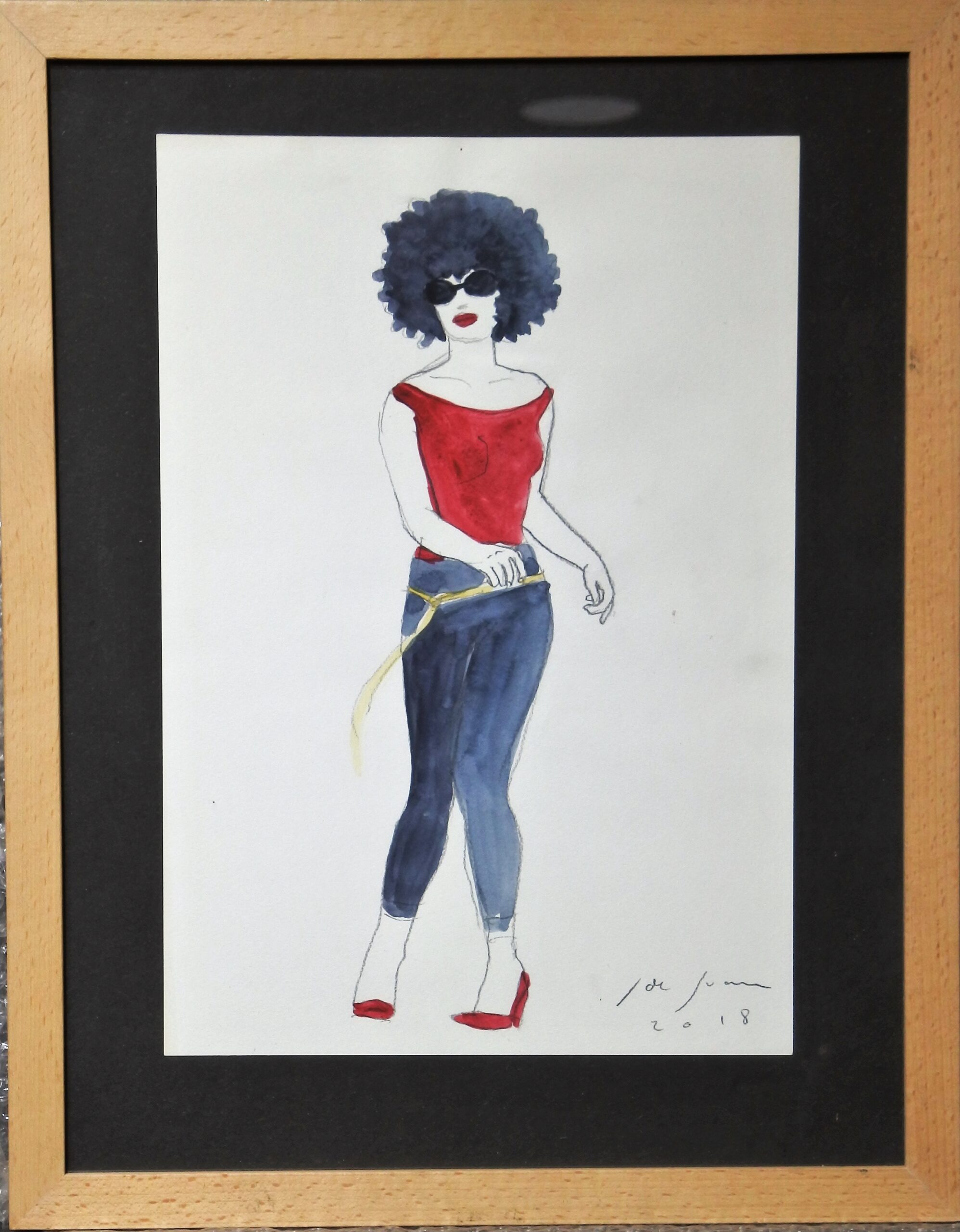 Javier de Juan, Dancing I, dibujo original lápiz y acrílico papel, enmarcado, dibujo 35,50×25 cms. y marco 47×37 cms.