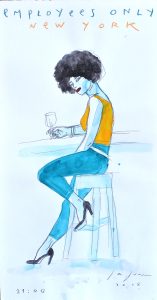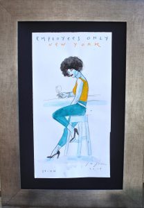 Javier de Juan, Employees Only, New York, serie Global Night, dibujo original pintura acrílico sobre cartulina, enmarcado, dibujo 47×25 cms. y marco 68,50×48 cms.