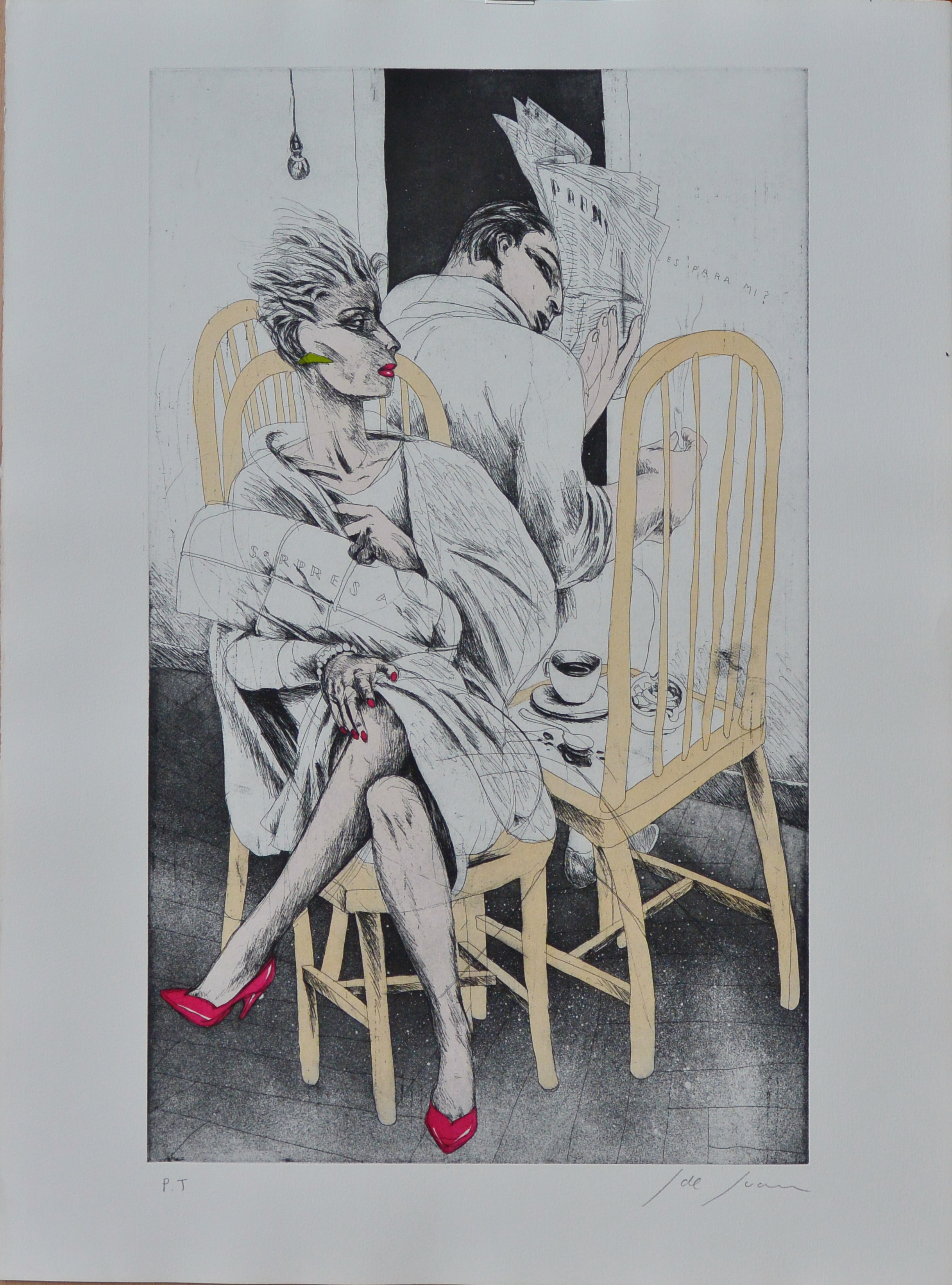 Javier de Juan, ¿Es para mí?, grabado, numerado pt y firmado a lápiz, papel 75×56 cms. y plancha 64×39 cms.