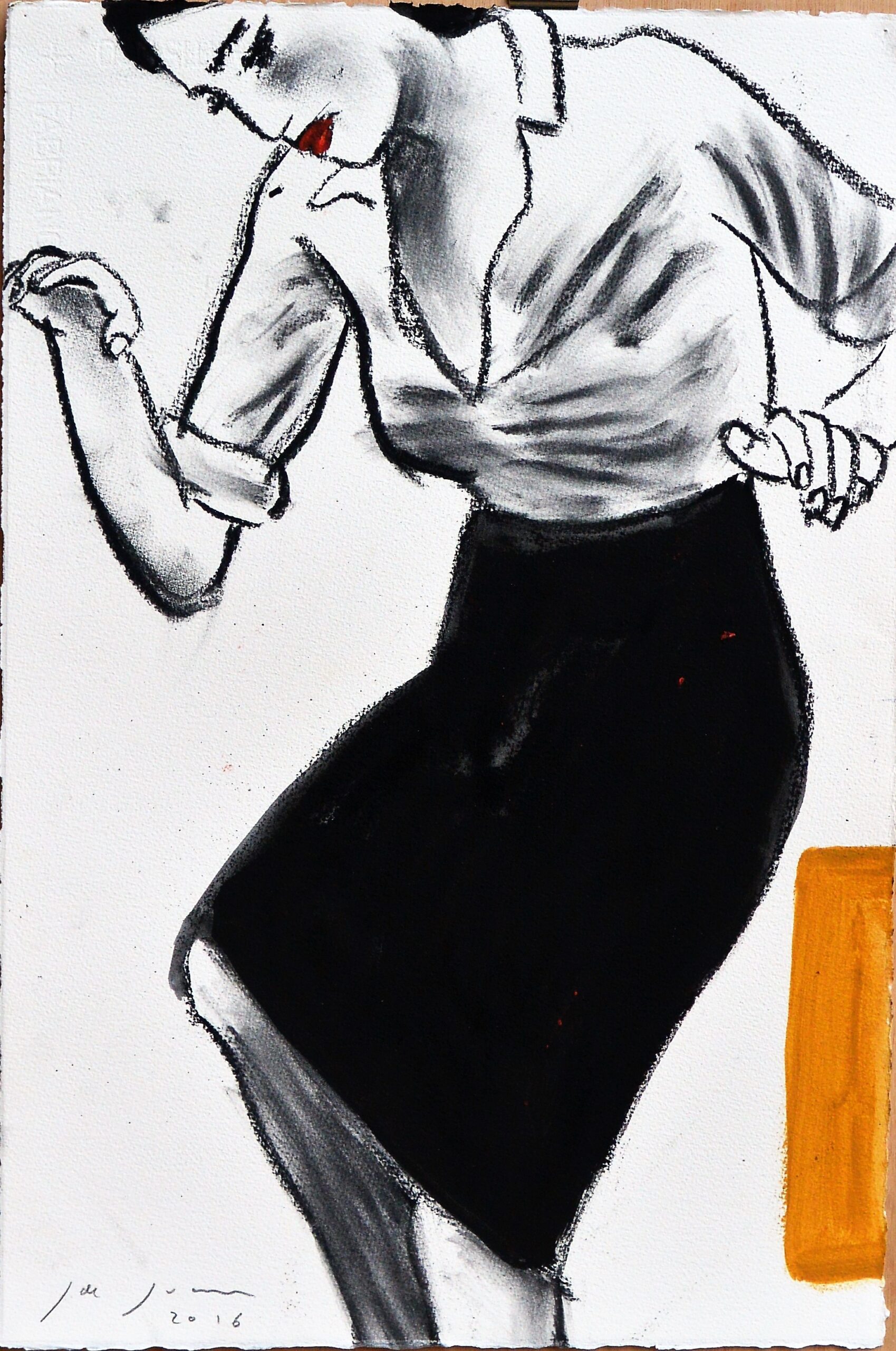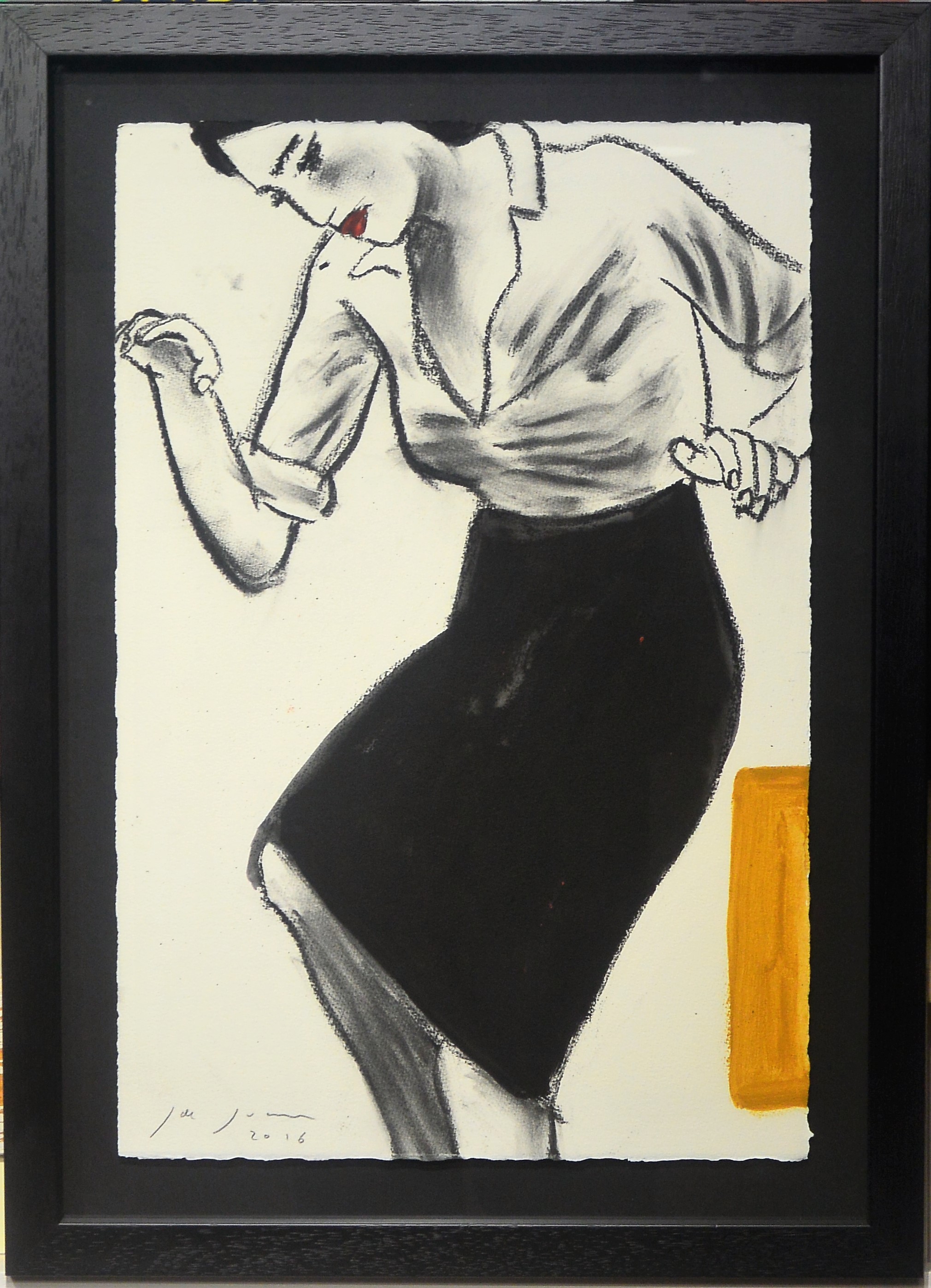 Javier de Juan, Es que no me lo puedo creer, oleo en barra tinta y carboncillo papel, enmarcado, papel 57×38 cms. y marco 69×51 cms.