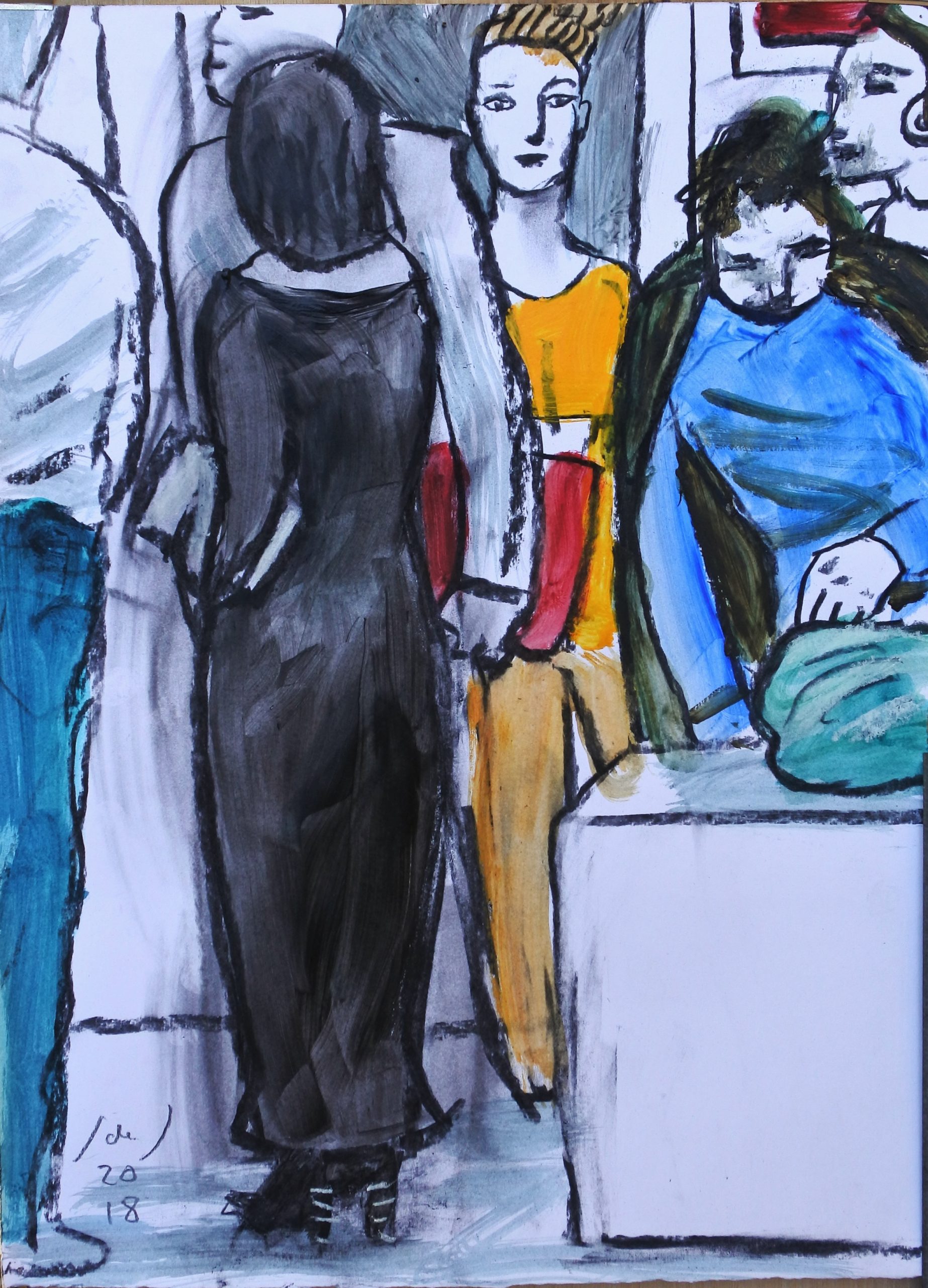 Javier de Juan – «La escultura» serie en una feria de arte, dibujo original carboncillo y pintura acrílico sobre cartulina, enmarcado