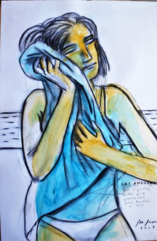 Javier de Juan, Las amazonas son mujeres guerreras…, dibujo original acrílico y carboncillo cartulina, 97×63 cms.