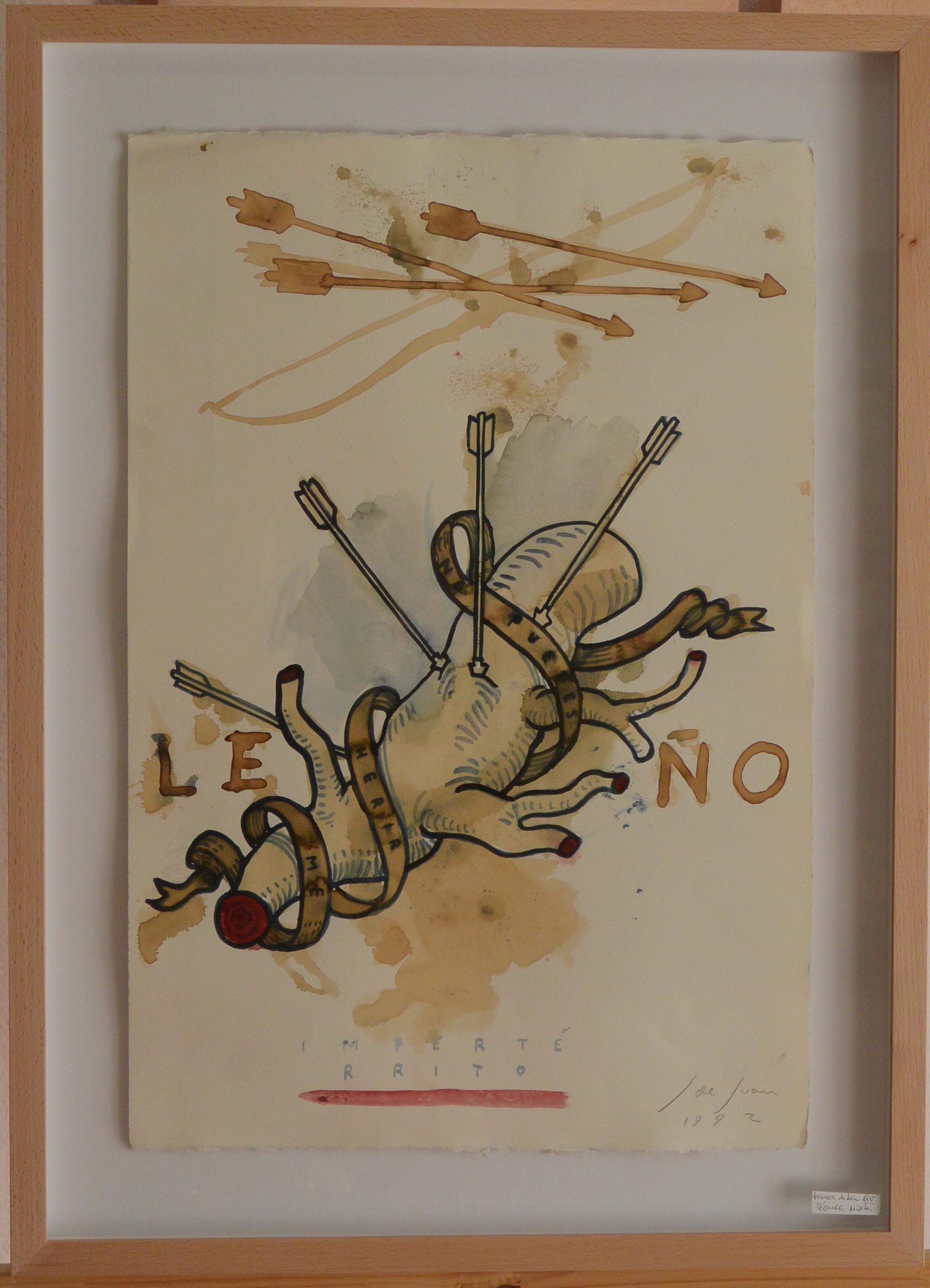 Javier de Juan, Técnica mixta papel, firmado a lápiz y fechado en 1991, enmarcado, dibujo: 56X38 cms. y con marco: 70X51 cm. Marco incluido