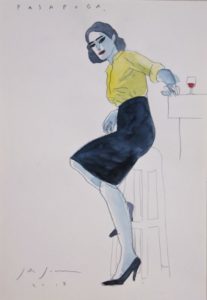 Javier de Juan, Pasapoga, serie barras de bares, dibujo original lápiz y acrílico papel, 35,50×24,70 cms.