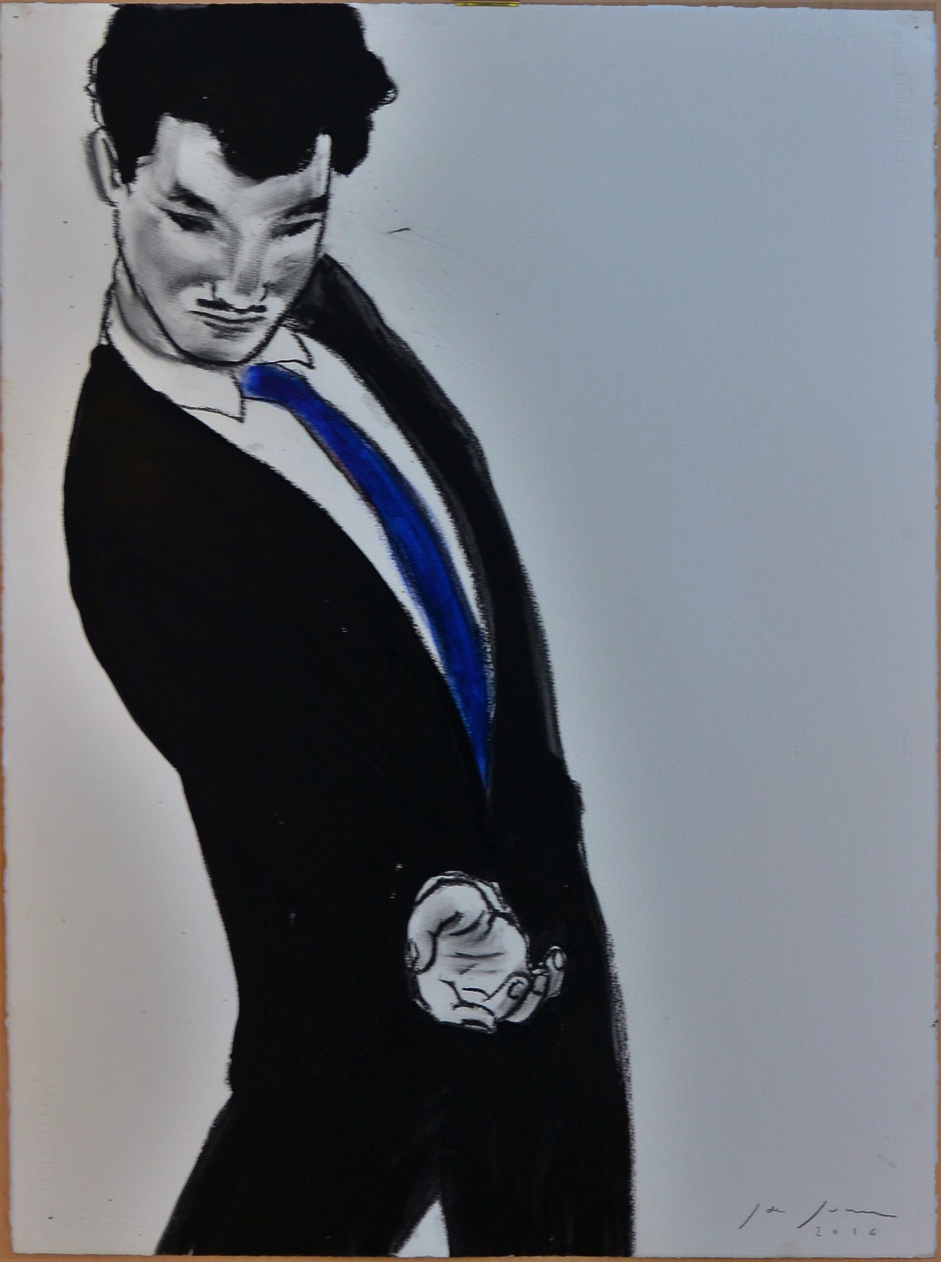 Javier de Juan, Pase por la derecha, pintura oleo en barra, tinta y carboncillo papel, enmarcado, obra 76×57 cms. y marco 86×66 cms.